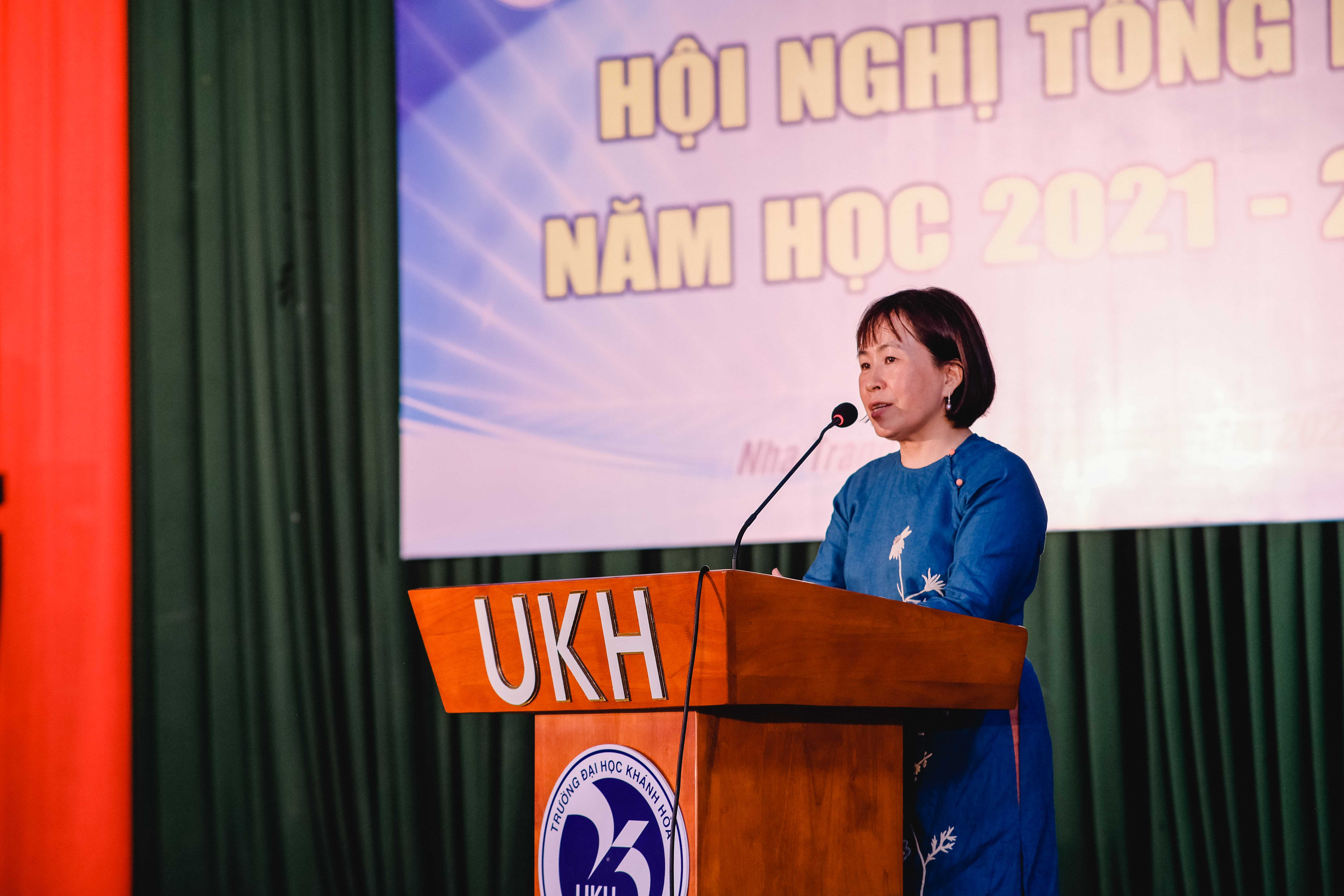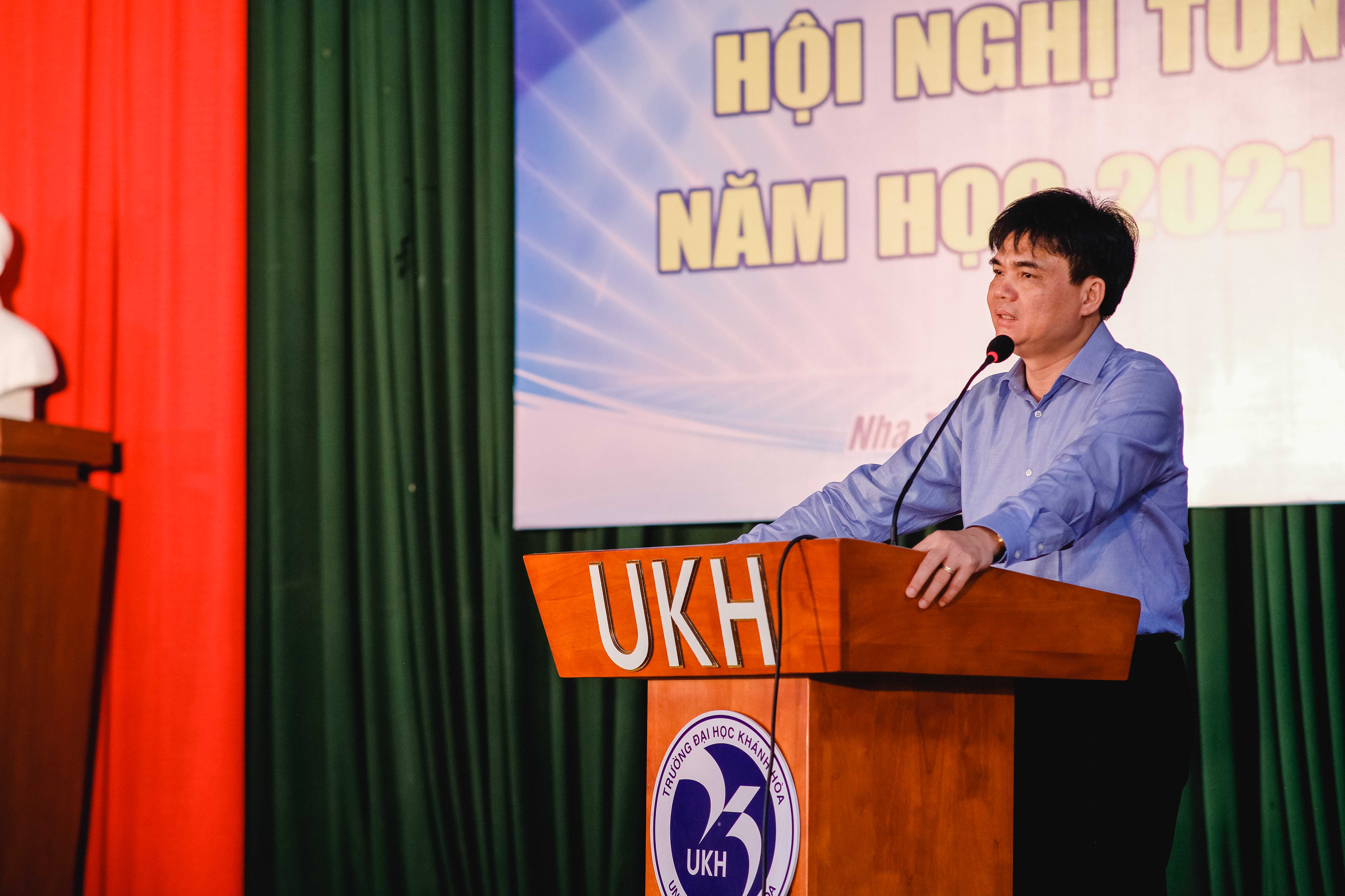 Báo cáo tại Hội nghị, TS. Phan Phiến – Phó Bí thư Đảng ủy – Hiệu trưởng cho biết, năm học 2021-2022 diễn ra trong bối cảnh đại dịch Covid-19 diễn biến phức tạp đã tác động mạnh mẽ đến hoạt động của ngành giáo dục nói chung và Trường Đại học Khánh Hòa nói riêng. Đây chính là khó khăn, thách thức nhưng đồng thời cũng là cơ hội để tập thể viên chức – người lao động và sinh viên toàn trường cùng vượt qua khó khăn, linh hoạt, chủ động chuyển trạng thái để thích ứng tình hình mới và thực hiện mục tiêu kép là: bảo đảm an toàn phòng dịch và hoàn thành các nhiệm vụ năm học đảm bảo chất lượng.