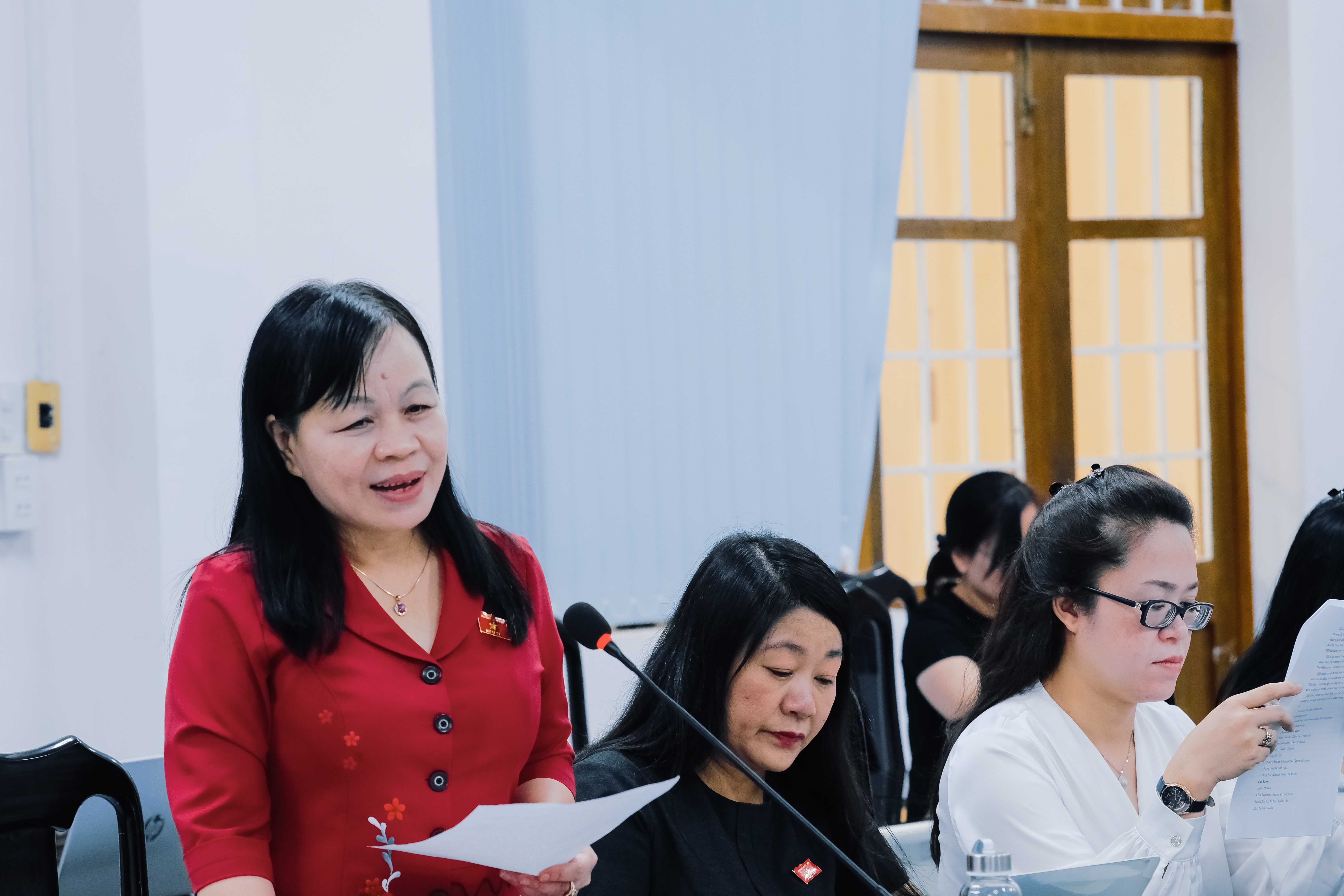 Hình 3. Đ/c Nguyễn Thị Mai Hoa – Phó Chủ nhiệm Uỷ ban VHGD – Đại biểu Quốc hội tỉnh Đồng Tháp phát biểu tại buổi làm việc