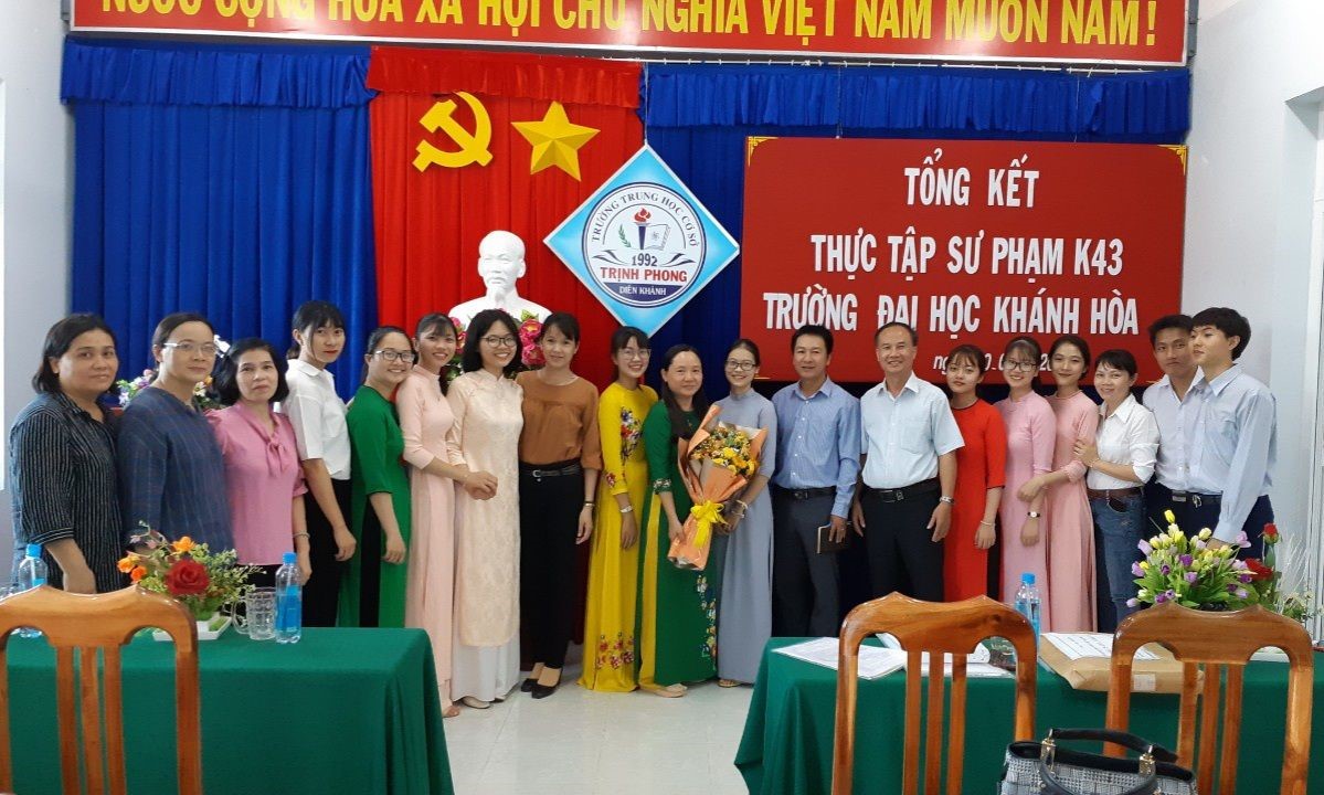 Thực tập sư phạm là hoạt động chiếm vị trí quan trọng trong quá trình đào tạo bởi chất lượng thực tập sư phạm phản ánh chất lượng đào tạo, rèn luyện nghề nghiệp của nhà trường, đồng thời thể hiện ở sinh viên khả năng vận dụng kiến thức, kĩ năng đã được thầy cô truyền đạt vào thực tế giảng dạy ở các trường phổ thông. Để tổng kết quá trình thực tập, chiều ngày 20/6/2020, Ban chỉ đạo thực tập sư phạm trường THCS Trịnh Phong tổ chức tổng kết đợt thực tập sư phạm cho sinh viên khóa 43 – Trường Đại học Khánh Hòa.