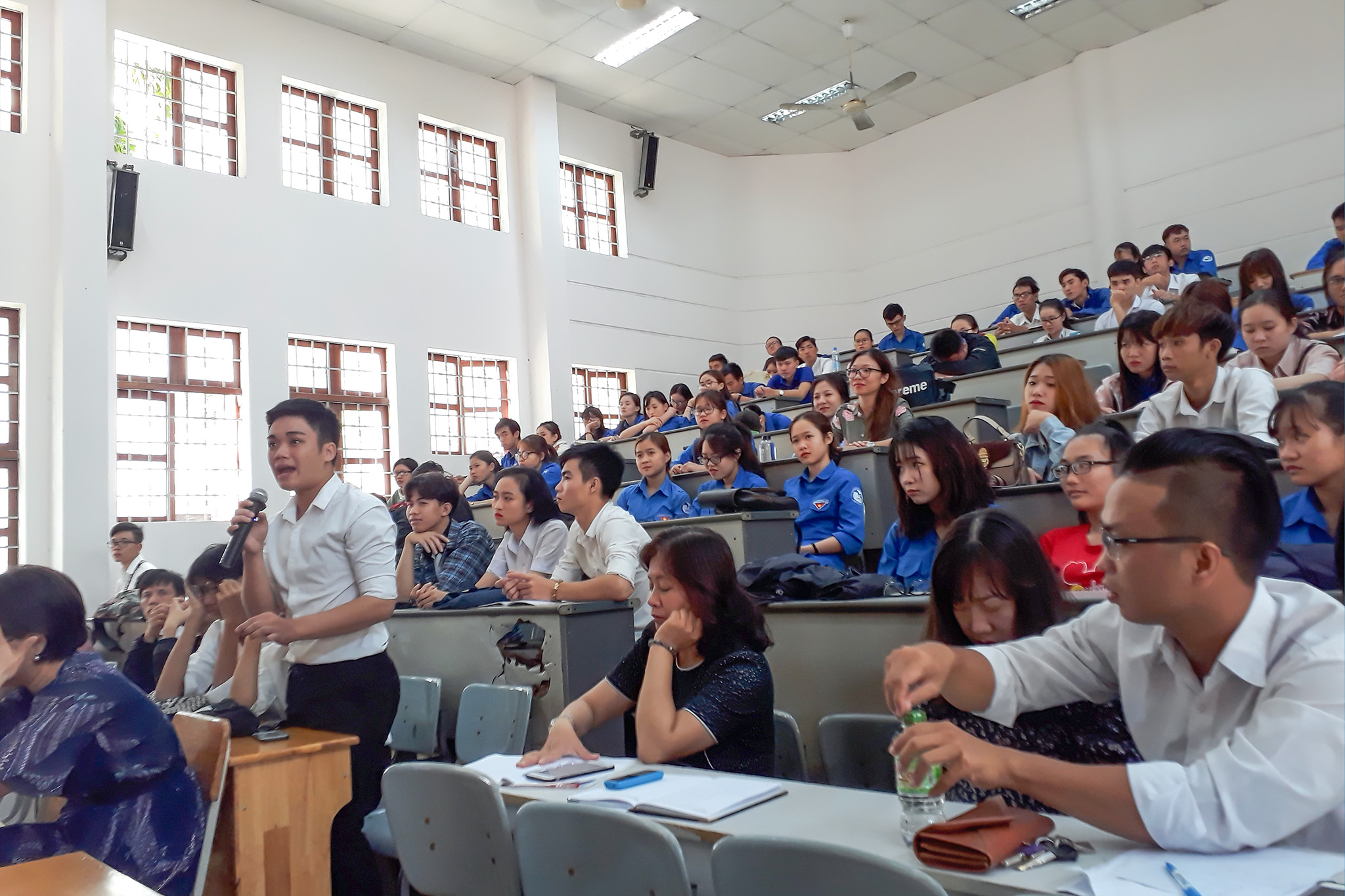 Hình 1: Sinh viên nêu câu hỏi với lãnh đạo nhà trường