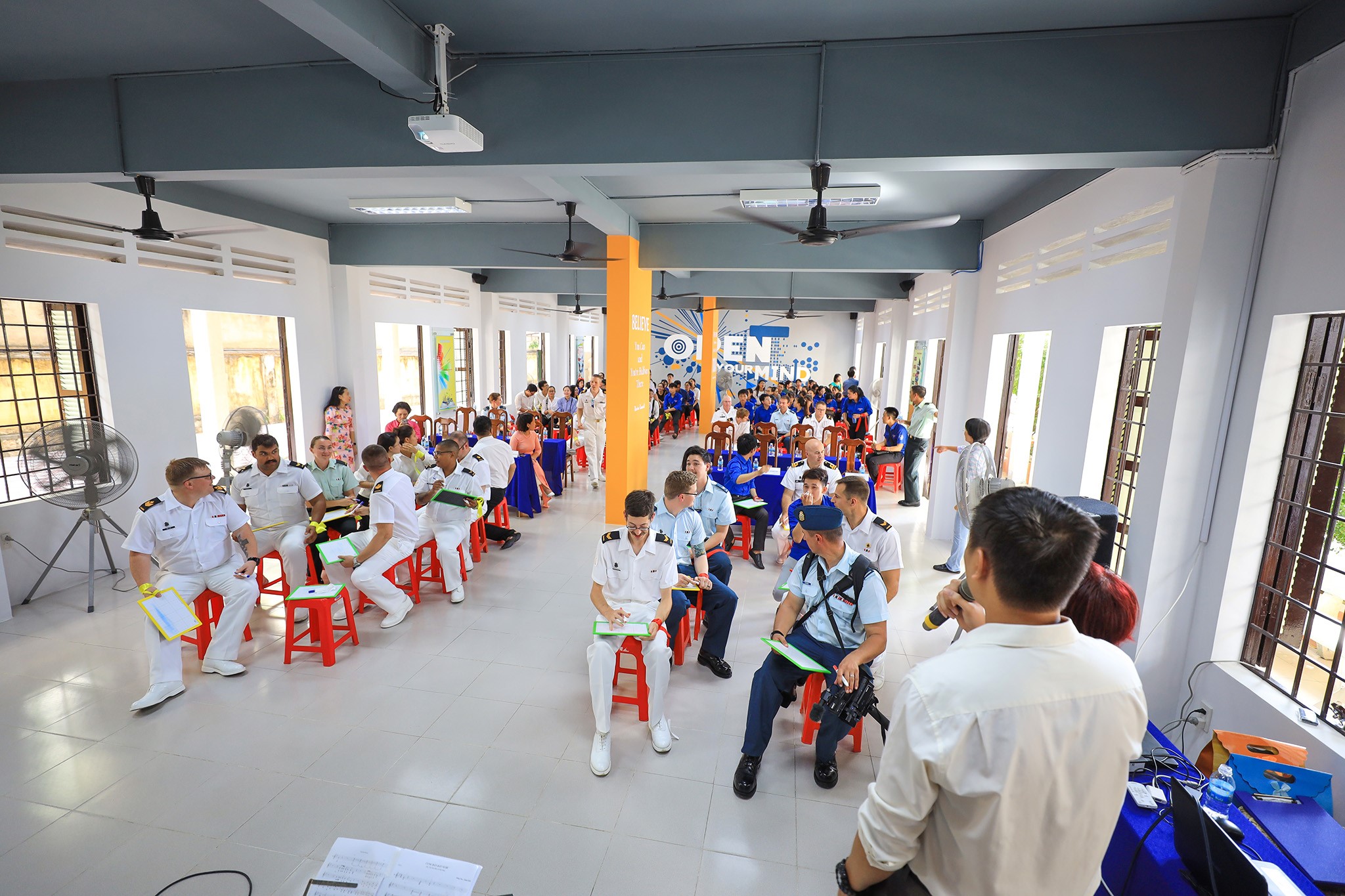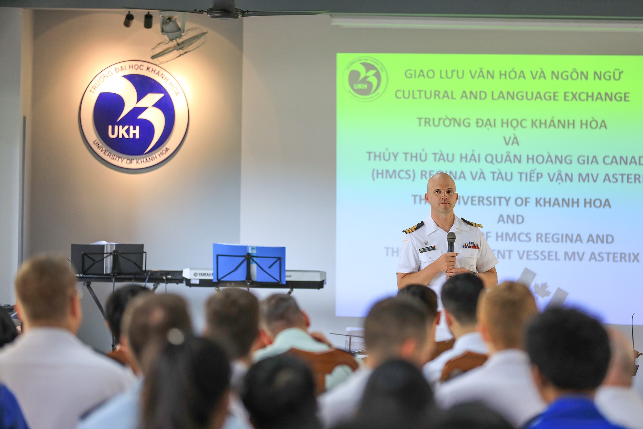 Hình 1: Trung tá Jacob French - Chỉ huy tàu Regina trong buổi giao lưu với Trường Đại học Khánh Hòa