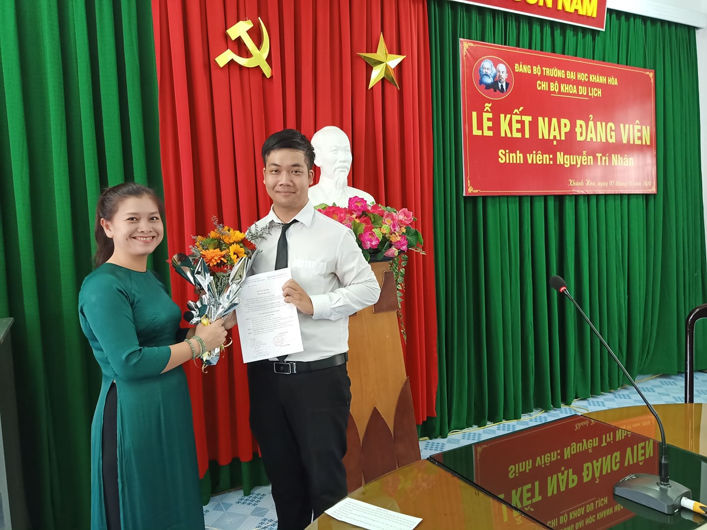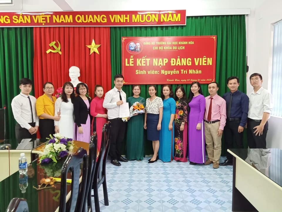 Chiều ngày 07/01/2020, được sự đồng ý của Đảng ủy Trường Đại học Khánh Hòa, Chi bộ Khoa Du lịch đã tổ chức Lễ kết nạp đảng viên mới cho quần chúng Nguyễn Trí Nhân, sinh viên lớp Cao đẳng QTKD Khách sạn – Nhà hàng K43B. Tham dự buổi lễ có các đồng chí trong Chi bộ Khoa và đại diện quần chúng ưu tú.