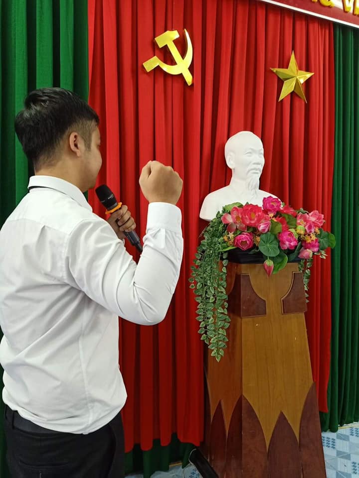 Hình 2: Đảng viên mới đọc tuyên thệ lời thề của người đảng viên Đảng Cộng sản Việt Nam