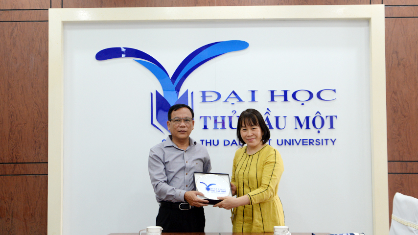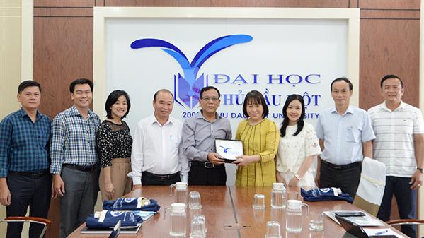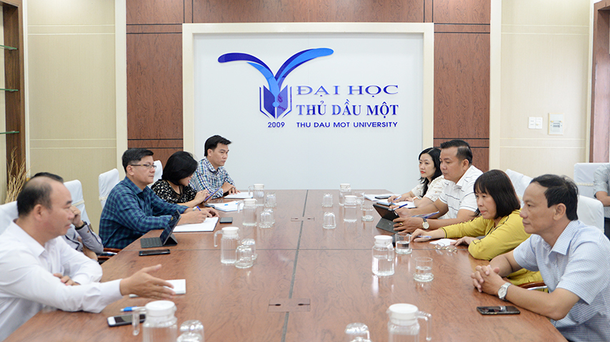 Tiếp và làm việc với đoàn có TS. Nguyễn Quốc Cường – Hiệu trưởng, TS. Ngô Hồng Điệp – Phó Hiệu trưởng trường ĐH Thủ Dầu Một. Về phía đoàn khách có TS. Lê Thị Mỹ Bình - Chủ tịch Hội đồng trường. Cùng dự có lãnh đạo các đơn vị trực thuộc của hai trường.