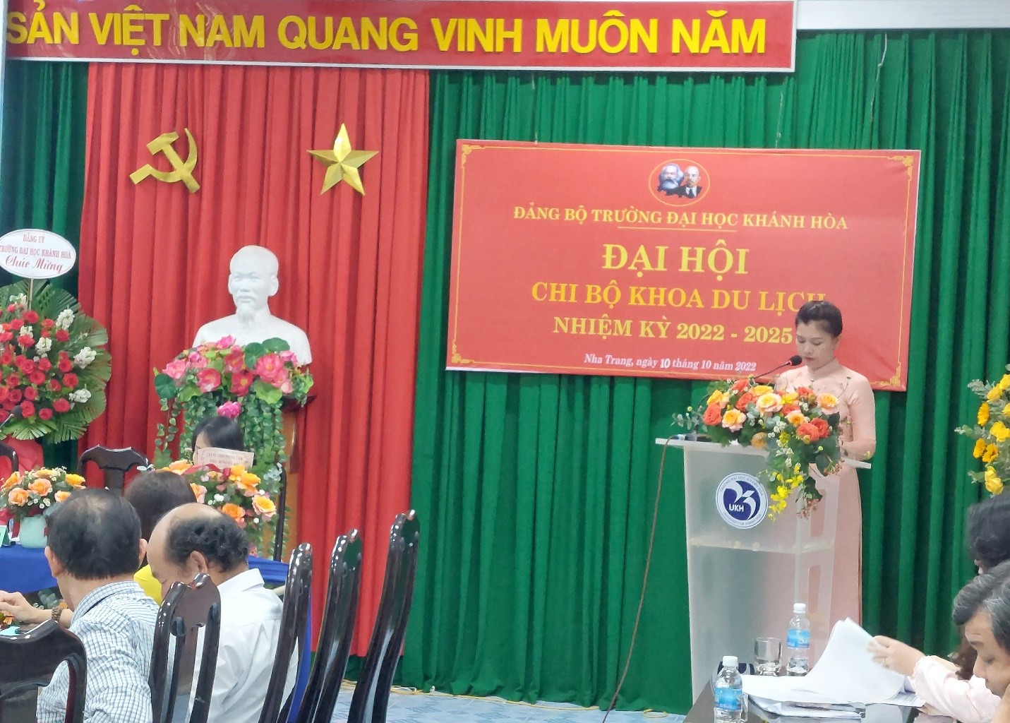 Đại hội Chi bộ khoa Du lịch đã tiến hành đầy đủ trình tự theo hướng dẫn tổ chức của Tỉnh ủy Khánh Hòa và Đảng ủy Trường Đại học Khánh Hòa. Đại hội đã nghe đồng chí Nguyễn Thị Hồng Cẩm - Đảng ủy viên, Bí thư Chi bộ khoa Du lịch nhiệm kỳ 2020 - 2022 thay mặt Đoàn chủ tịch trình bày Báo cáo tổng kết hoạt động của Chi bộ trong nhiệm kỳ 2020 - 2022 và phương hướng hoạt động nhiệm kỳ 2022-2025.