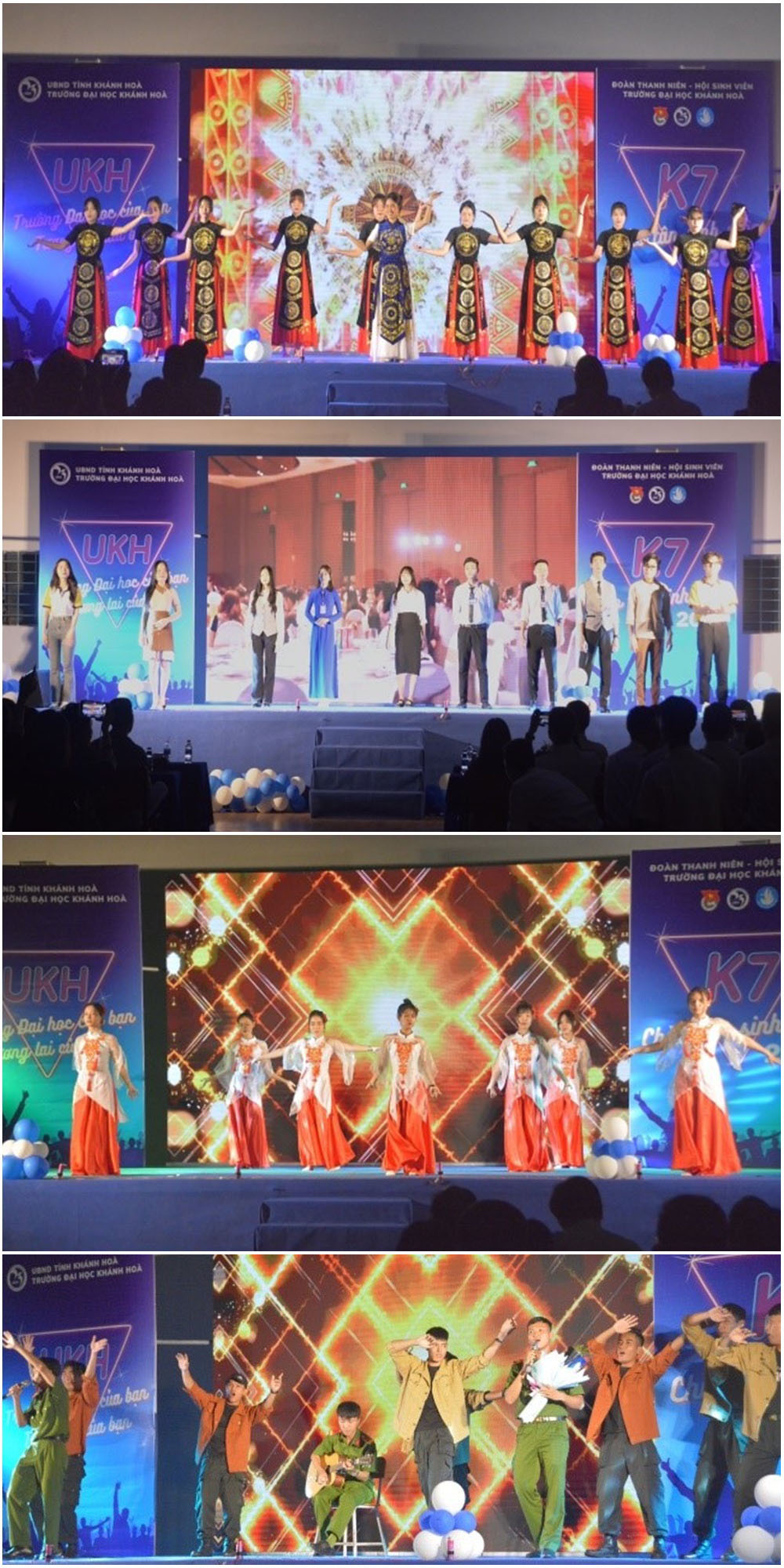 Chương trình năm nay được chuẩn bị công phu hoành tráng với các tiết mục văn nghệ đến từ sinh viên các khoa. Bên cạnh đó là những tiết mục đến từ các chiến sĩ Học viện hải quân và Đoàn công an tỉnh. Những chương trình nghệ thuật Chào tân sinh viên của các khoa như một lời động viên khích lệ tinh thần cho các bạn trong năm học mới lưu lại những kỷ niệm đẹp đáng nhớ tuổi thanh xuân dưới mái nhà chung UKH. Chương trình khép lại với tiết mục âm nhạc DJ với âm nhạc và những phần trình diễn trẻ trung sôi động làm cho sân khấu nóng hơn bao giờ hết.