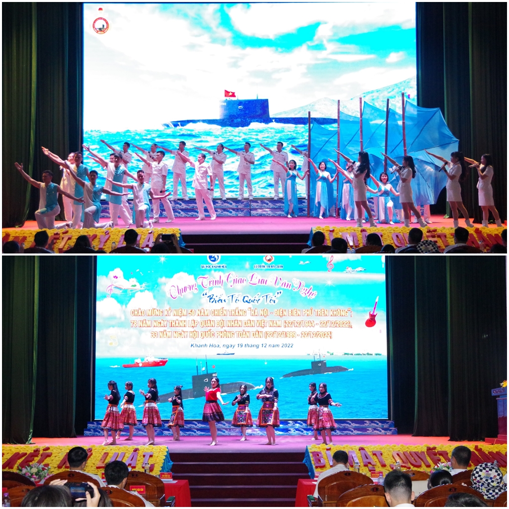 Cũng trong tối ngày 21/12/2022, tại Quảng trường 2-4, TP. Nha Trang, tỉnh Khánh Hòa, Đoàn nghệ thuật quần chúng của Trường Đại học Khánh Hòa đã tham gia biểu diễn trong Liên hoan “Chiến sĩ hát và hát về chiến sĩ” lần thứ 31 năm 2022. Đây là hoạt động thường niên do Sở Văn hóa và Thể thao tỉnh Khánh Hòa phối hợp với Bộ Chỉ huy Quân sự tỉnh Khánh Hòa tổ chức.