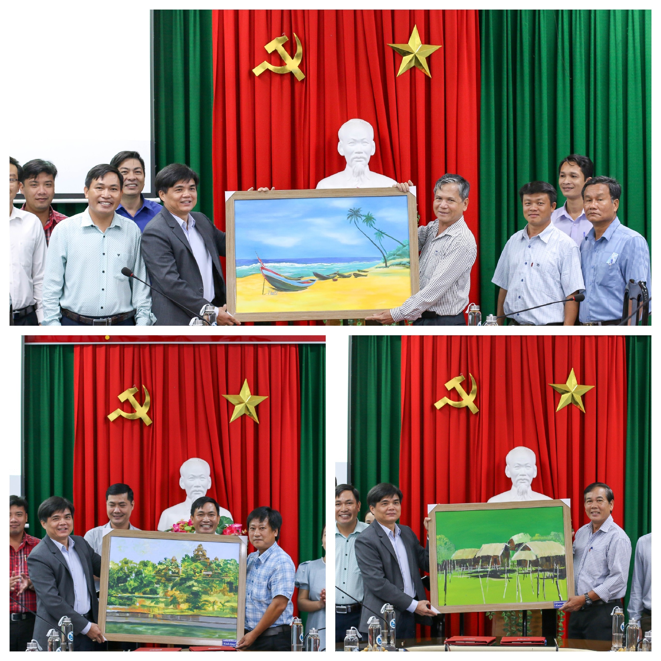 Hình 2: Hiệu trưởng Trường Đại học Khánh Hoà tặng quà cho các đối tác