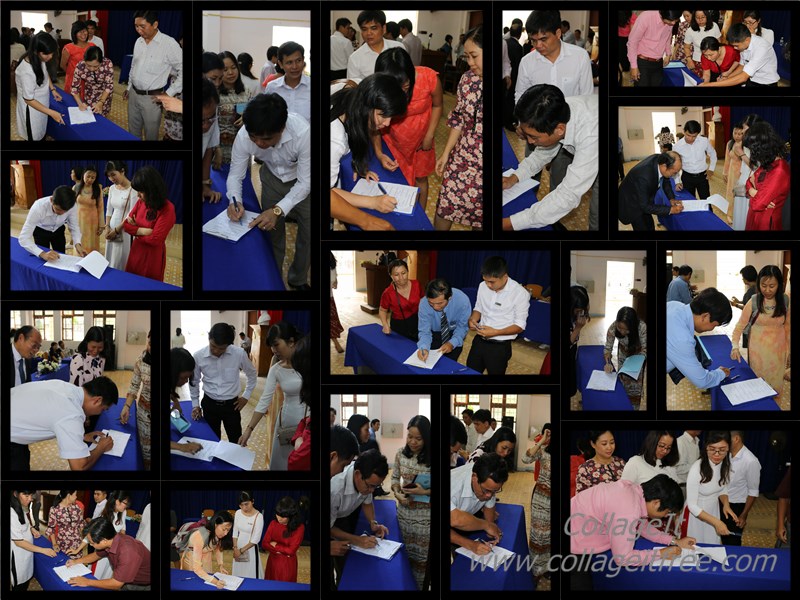 Ảnh 7: Trưởng các đơn vị Phòng, Khoa, Trung tâm ký bản cam kết thực hiện NQ và giao ước thi đua năm học 2017-2018