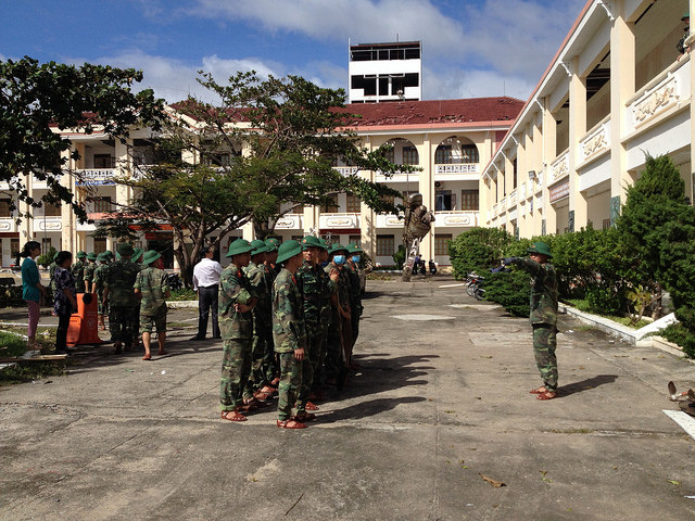 Sáng nay 06/11/2017, một trung đội bộ đội Trường Thông tin liên lạc Nha Trang đã đến hỗ trợ cho Trường Đại học Khánh Hòa thu dọn các khu vực giảng đường bị hư hỏng do cơn bão 12 gây ra.