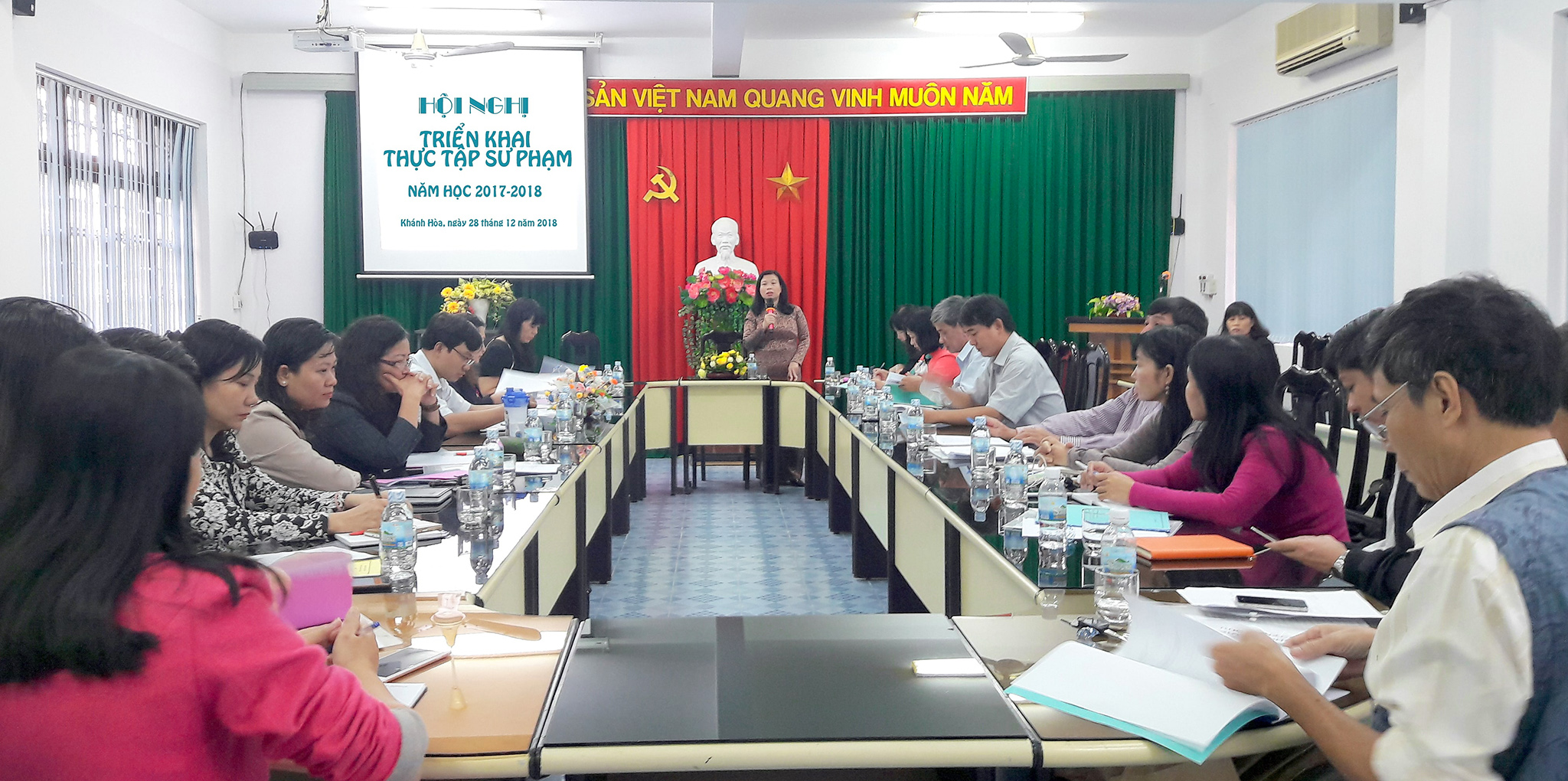 Thực tập sư phạm là khâu hết sức quan trọng nhằm gắn lý thuyết với thực hành, lý luận với thực tiễn trong quá trình đào tạo người giáo viên, tăng cường sự gắn kết giữa cơ sở đào tạo và đơn vị sử dụng nhân lực. Sau gần ba tháng chuẩn bị tích cực của Ban giám hiệu và Phòng Quản lý Đào tạo-Khảo thí, với sự phối hợp tạo điều kiện của Sở GD- ĐT tỉnh Khánh Hòa, của phòng GD-ĐT Huyện Diên Khánh và phòng GD-ĐT thành phố Nha Trang, ngày 28 tháng 12 năm 2017 Trường Đại học Khánh Hòa đã long trọng tổ chức Hội nghị Triển khai thực tập Sư phạm (TTSP) năm học 2017-2018 với sự tham gia của Ban Chỉ đạo TTSP cấp tỉnh và cấp trường.