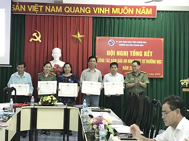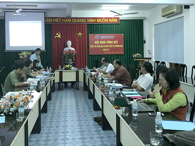 Ngày 23 tháng 01 năm 2018, tại Phòng họp 1 - Trường Đại học Khánh Hòa đã diễn ra Hội nghị Tổng kết công tác đảm bảo An ninh trật tự trường học (ANTTTH) năm 2017, đến dự Hội nghị, có sự tham dự đông đủ của tất cả các thành viên Ban chỉ đạo công tác ANTTTH, lãnh đạo các đơn vị trong trường, và đặc biệt là các đại biểu đến từ Công an Tỉnh Khánh Hòa (Phòng Xây dựng phong trào Toàn dân bảo vệ an ninh Tổ quốc - PV28, Phòng An ninh chính trị nội bộ - PA83), Công an Thành phố Nha Trang, Công an Phường Lộc Thọ và Phường Vĩnh Hải.