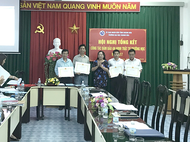 Năm 2017 thực sự là một năm khởi sắc của trường Đại học Khánh Hòa trong công tác đảm bảo ANTTTH, nhà trường đã tiếp tục xây dựng các mô hình, điển hình tiên tiến, mô hình thanh niên, sinh viên tự quản, công tác tuyên truyền phổ biến giáo dục pháp luật được quan tâm và chú trọng, tình hình sinh viên ổn định và phát huy được tinh thần Thanh niên ái quốc. Trong năm 2017, với những hoạt động sôi nổi và hiệu quả trong công tác đảm bảo ANTTTH nói riêng và Phòng trào Toàn dân bảo vệ ANTQ nói chung, Trường Đại học Khánh Hòa đã được UBND tỉnh Khánh Hòa công nhận là đơn vị đạt tiêu chuẩn về ANTT, được Công an Tỉnh Khánh Hòa và Hội đồng thi đua khen thưởng Tỉnh Khánh Hòa tặng nhiều bằng khen, cờ thi đua, đề nghị Bộ Công an tặng Bằng khen vì đã có nhiều thành tích trong công tác đảm bảo ANTTTH và phong trào Toàn dân bảo vệ ANTQ.