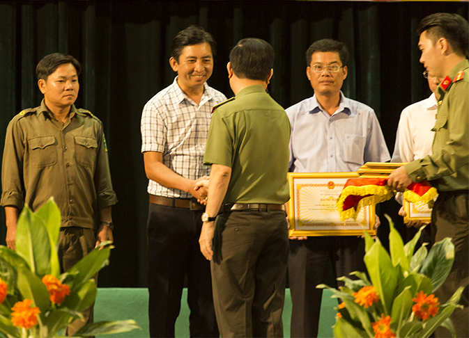 Hình 2: Thầy Nguyễn Đăng Đức - Phó trưởng phòng CTSV - Thay mặt tập thể nhà trường nhận Bằng khen của Bộ trưởng Bộ Công an