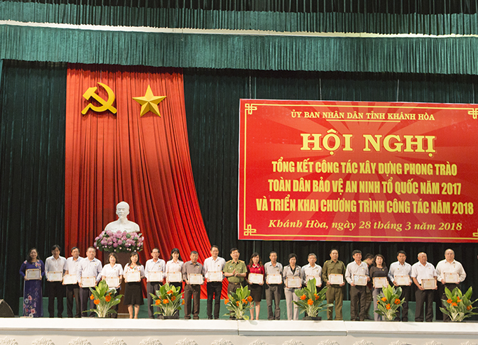 Tại Hội nghị Tổng kết công tác Xây dựng phong trào toàn dân bảo vệ an ninh Tổ quốc năm 2017 và triển khai chương trình công tác năm 2018 của Tỉnh Khánh Hòa diễn ra ngày 28/3/2018, Trung tướng Nguyễn Văn Sơn - Thứ trưởng Bộ Công An đã đến trao tặng cờ thi đua, Bằng khen, Kỷ niệm chương cho các tập thể, cá nhân có nhiều đóng góp cho phong trào TDBVANTQ, đồng chí đã hết lời khen ngợi thành tích mà các tập thể và cá nhân đã đạt được, đồng thời, đồng chí cũng nhấn mạnh, sự nghiệp xây dựng phong trào TDBVANTQ vẫn còn rất dài, còn gặp nhiều khó khăn, thử thách trong bối cảnh đạo đức xã hội ngày càng xuống cấp. Vì vậy, đồng chí yêu cầu Toàn Đảng, Toàn dân, Toàn Quân Khánh Hòa tiếp tục phát huy hiệu quả, xây dựng mới nhiều mô hình hoạt động có hiệu quả, xóa bỏ những mô hình trước đây không còn phù hợp với tình hình mới,... nhằm đảm bảo cuộc sống của nhân dân được bình an, hạnh phúc.