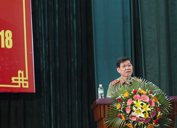 Hình 5: Trung tướng Nguyễn Văn Sơn - Thứ trưởng bộ Công an - biểu dương thành tích của các tập thể cá nhân và chỉ đạo tại Hội nghị