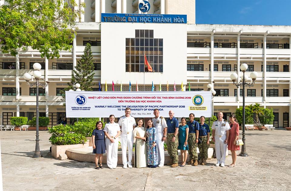 Hình: Các sĩ quan của Chương trình Hợp tác Thái Bình Dương và các giảng viên Trường Đại học Khánh Hòa