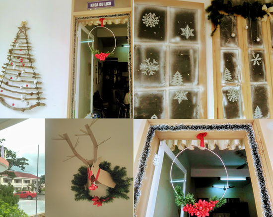 Những tháng cuối năm là thời điểm diễn ra các lễ hội trên khắp thế giới. Không khí náo hức, hân hoan lan tỏa trên khắp mọi nẻo đường. Tuy nhiên đây cũng là khoảng thời gian mà các bạn sinh viên bước vào giai đoạn thi cuối kỳ đầy căng thẳng. Để giúp các bạn sinh viên có được kỳ thi đạt kết quả cao nhất, khoa Du lịch đã lập nên dự án “Trang trí văn phòng khoa” theo phong cách thật lung linh, rực rỡ. Thông qua dự án này, khoa Du lịch mong rằng các bạn sinh viên sẽ có thể giải tỏa bớt áp lực trong kỳ thi đồng thời cảm nhận được môi trường thân thiện, gần gũi ở khoa Du lịch cũng như Trường Đại học Khánh Hòa.