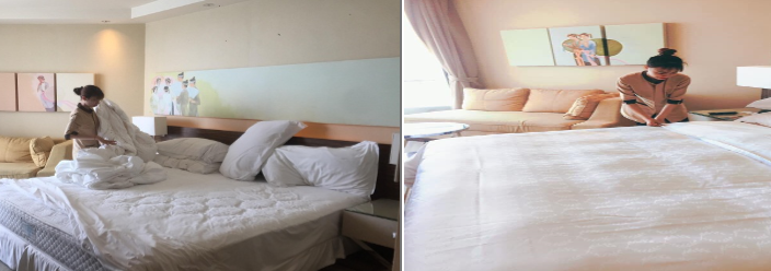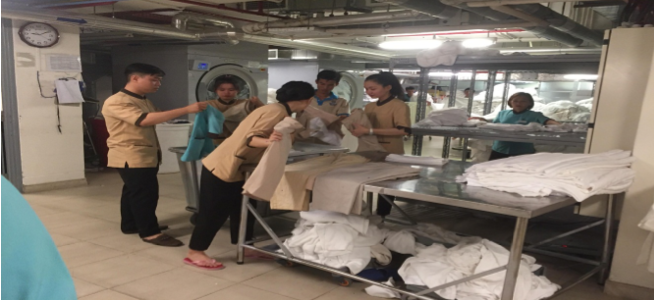 Hình 1: Sinh viên làm việc theo sự hướng dẫn của nhân viên trong khách sạn( khu vực Laundry)
