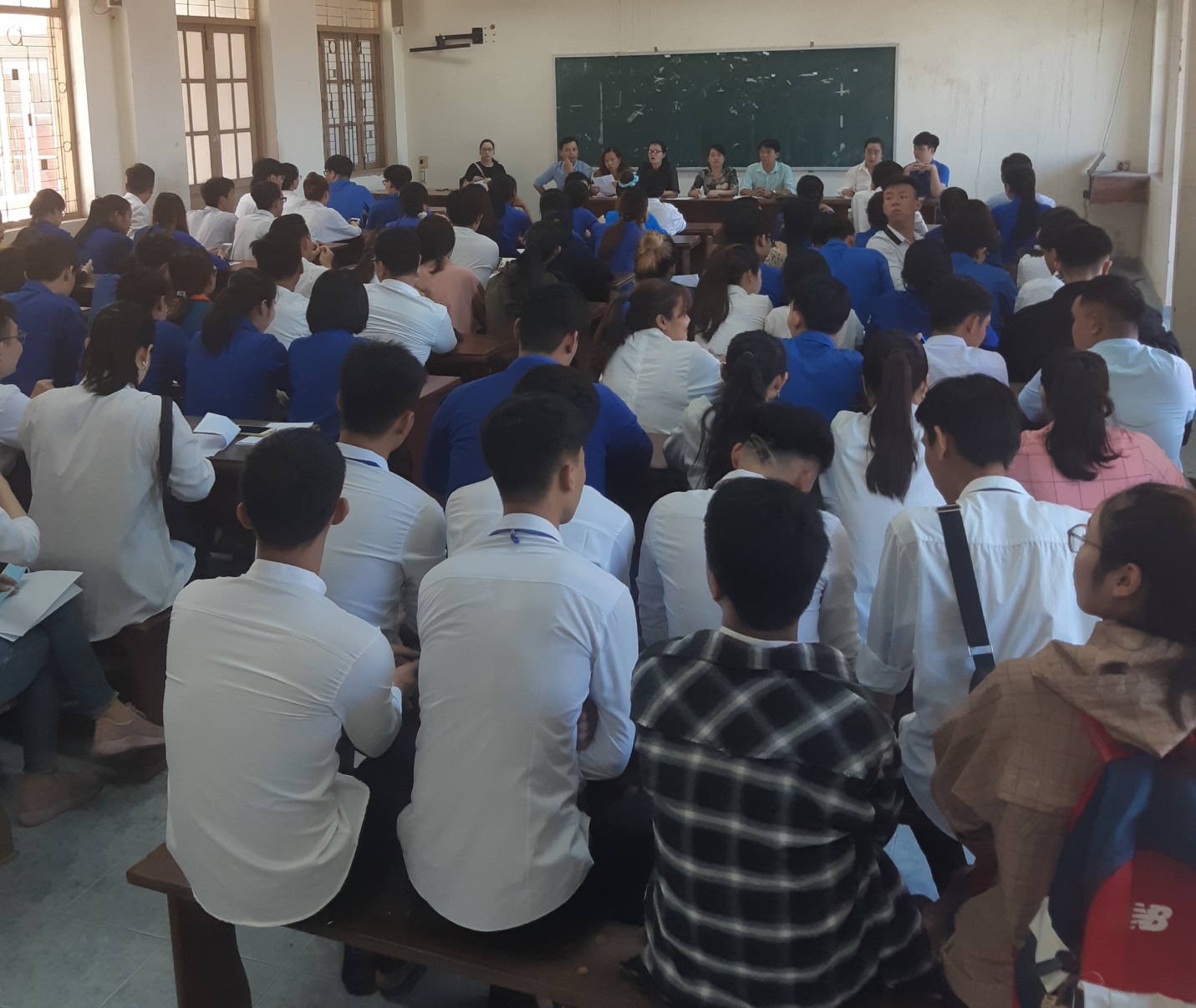 Hình 2: Ban chủ nhiệm Khoa ghi nhận các ý kiến và giải đáp các thắc mắc của sinh viên