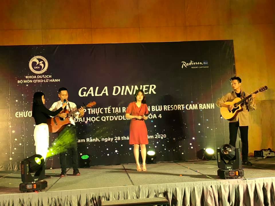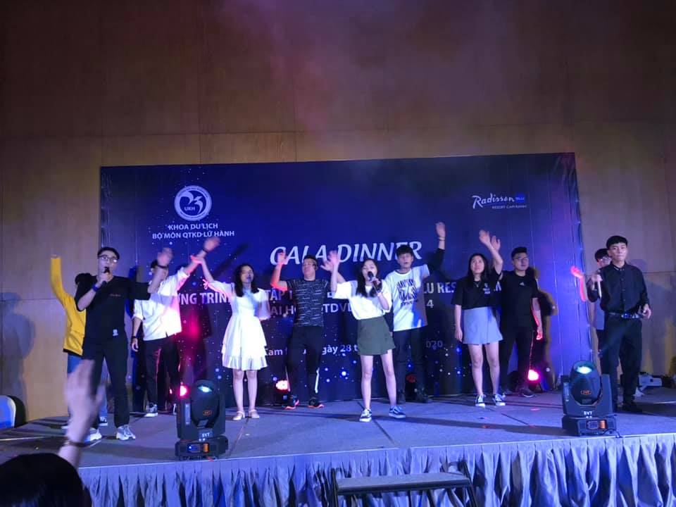 Buổi tối chúng em đã được thưởng thức tay nghề của các đầu bếp tài ba của resort với những món ăn Việt ấm cúng. Cũng trong bữa tối này, chương trình Gala dinner đã được diễn ra. Các bạn sinh viên đến từ 4 lớp QTDVDL&LH khóa 4 đã mang đến không khí sôi động cho Gala với những tiết mục văn nghệ đặc sắc, công phu bên cạnh những trò chơi vui nhộn, ấn tượng. Chương trình được sắp xếp khéo léo cùng sự duyên dáng của các bạn MC đã dẫn dắt không khí buổi tiệc từ nhẹ nhàng đến bùng nổ và sau đó lắng đọng. Cảm xúc thật sự vỡ òa khi đến tiết mục cuối cùng, tất cả mọi người đã cùng nhau hát vang ca khúc “Như ngày hôm qua”, tạo nên kỷ niệm thật đẹp với các cánh tay giơ cao theo giai điệu của bài hát cùng với ánh đèn flash lung linh tràn ngập không gian đong đầy cảm xúc của khán phòng.