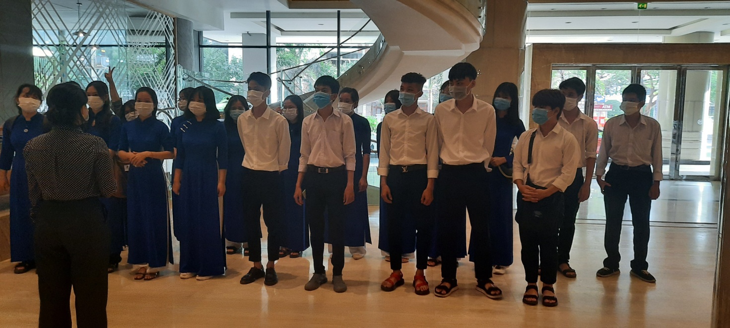 Hình 1: Sinh viên tập trung tại sảnh khách sạn để nghe giới thiệu về các dịch vụ trong khách sạn