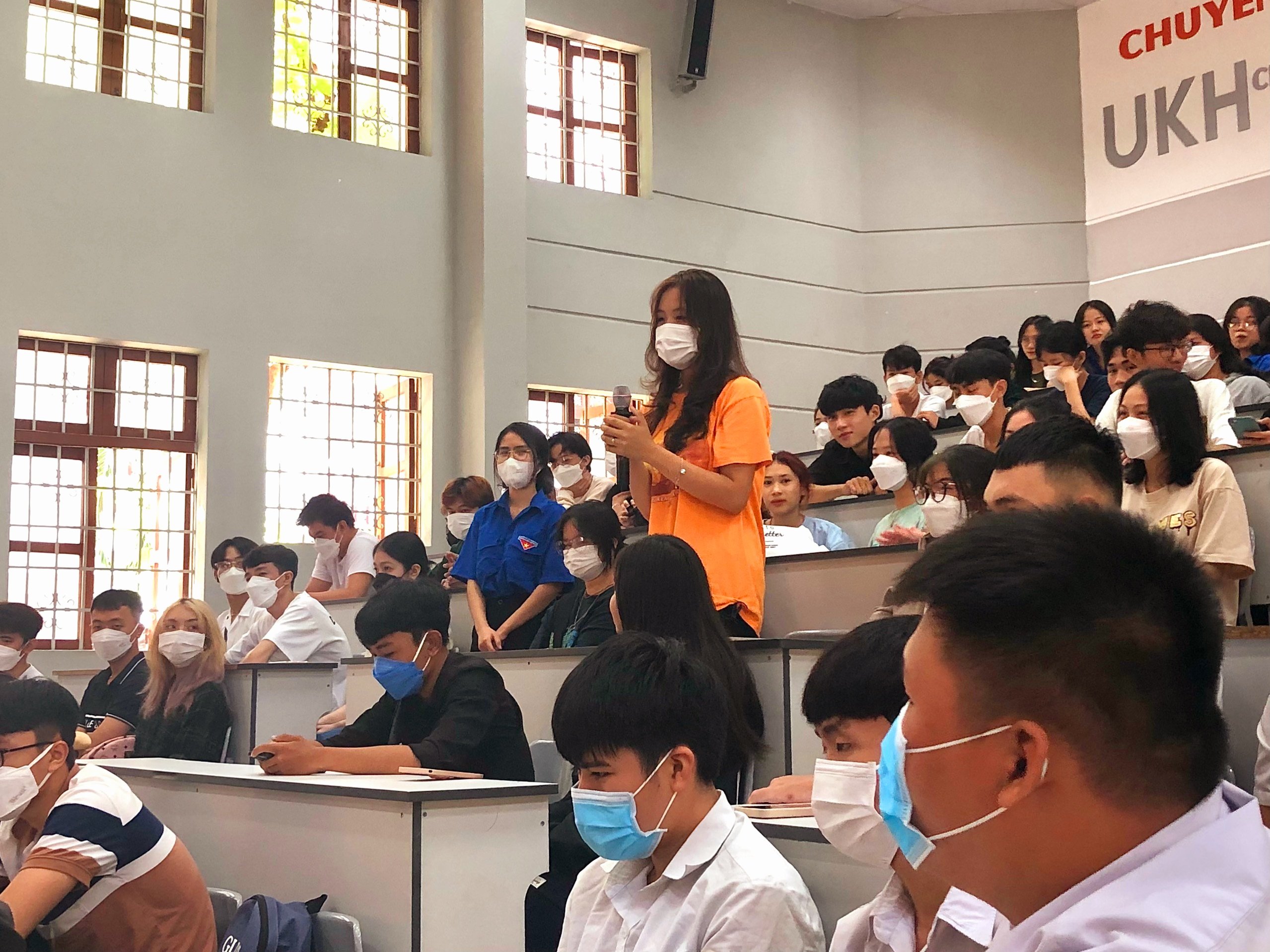 Xuyên suốt chương trình là sự giao lưu giữa các thầy cô với các tân sinh viên K7. Các tân sinh viên có cơ hội tìm hiểu và đặt câu hỏi về chương trình đào tạo, chuẩn đầu ra, các điều kiện tốt nghiệp về ngoại ngữ, tin học, giáo dục thể chất, giáo dục quốc phòng...