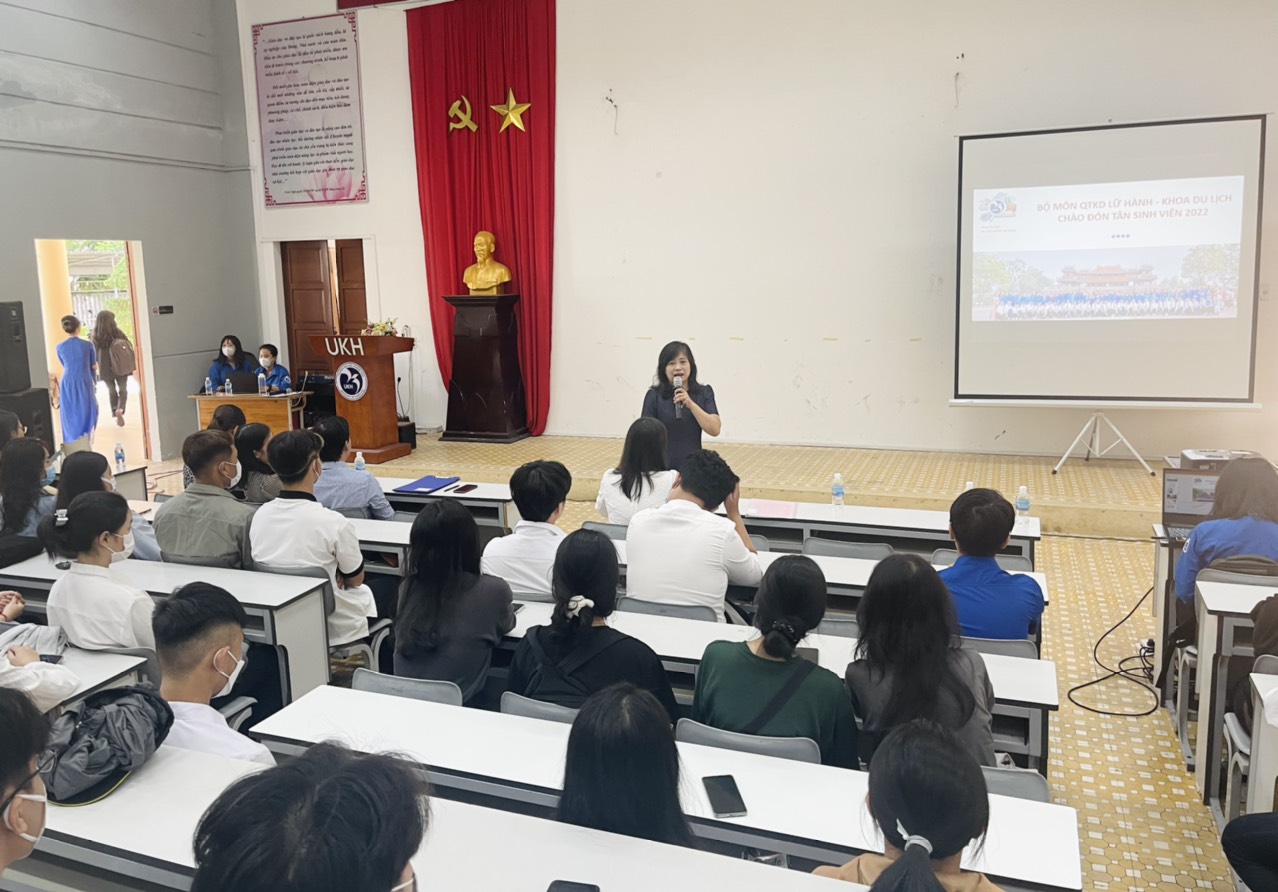 Hôm nay, ngày 7/10/2022 Khoa Du Lịch có buổi Gặp mặt Tân sinh viên K7. Chương trình là buổi gặp gỡ giữa Lãnh đạo Khoa Du lịch, các thầy cô Bộ môn, Cố vấn học tập và các bạn tân sinh viên nhằm giới thiệu và giải đáp những thắc mắc của các bạn khi vừa bước vào môi trường mới, còn nhiều bỡ ngỡ và lạ lẫm. Nội dung chương trình gồm giới thiệu Chương trình đào tạo ngành, chương trình thực tế bộ môn, chuẩn đầu ra của các ngành Quản trị dịch vụ du lịch và lữ hành, Việt Nam học, Quản trị kinh doanh Nhà hàng và dịch vụ ăn uống, Quản trị khách sạn, Quản lí bán lẻ, Quản trị kinh doanh Marketing.