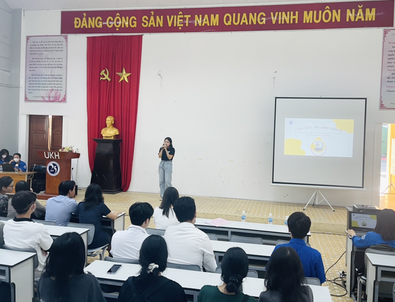 Hình 6,7: Các Thầy Cô Khoa Du Lịch giới thiệu chương trình học và chuẩn đầu ra cho các tân sinh viên K7