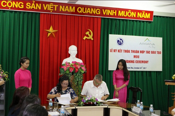 Trong nỗ lực tạo thêm nhiều cơ hội cho sinh viên làm quen và tiếp xúc với môi trường làm việc chuyên nghiệp, trường đại học Khánh Hòa và Amiana Nha Trang Resort đã tiến hành ký hợp tác đào tạo, vào ngày 23 tháng 10 năm 2017 tại trường đại học Khánh Hòa. Khoa Du lịch trường đại học Khánh Hòa đã và đang từng bước khẳng định uy tín, chất lượng đào tạo nguồn nhân lực du lịch chất lượng cao tại khu vực Nam Trung Bộ & Tây Nguyên.