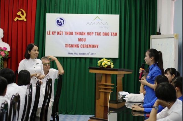 “Khi tôi còn là sinh viên học ngành khách sạn - nhà hàng tại trường đại học, tôi cũng đã từng tham gia các chương trình hợp tác để đến các khách sạn và resort cao cấp thực tập, vừa tăng khả năng tiếp cận thực tế, vừa nâng cao kiến thức, nâng cao tay nghề, đồng thời cũng có được một nguồn thu nhập. Do đó tôi mong muốn nhân dịp này, các sinh viên du lịch cũng như các bạn sinh viên các ngành có liên quan của trường Đại học Khánh Hòa có thể đến thực tập và làm việc tại khu nghỉ dưỡng của chúng tôi” (Phát biểu của ông Alexander Vogl - Tổng quản lý Amiana Nha Trang Resort).