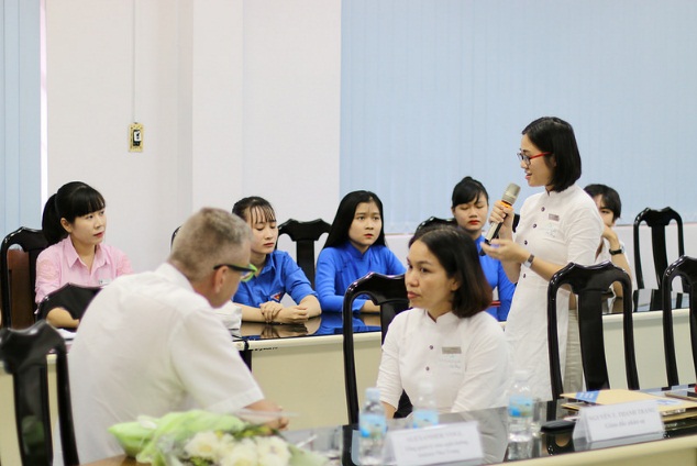 Ảnh 3 : Trưởng bộ phận đào tạo Amiana Nha Trang Resort đối thoại với sinh viên khoa Du lịch