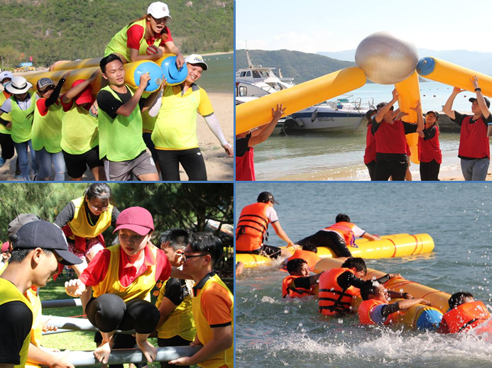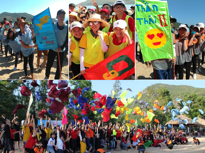 Thời khắc sôi động đã đến, không khí ngoài biển nóng hơn bao giờ hết với những hoạt động tập thề thông qua chương trình Team building với tên gọi: “Vũ điệu hoang dã”. Xanh- cam, vàng- xám, đỏ- hồng chóe cả một vạt không gian - đó là màu áo của các đội chơi. Các thành viên nhanh chóng đặt tên và khẩu hiệu cho đội mình: “Chơi hết mình”. Đội bạn cũng không kém cạnh gì: “Quan trọng là thần thái II”, “09”, “OMO - ngại gì vết bẩn”, … Ôi! Những cái tên đính kèm Slogan đầy ấn tượng, báo hiệu cho những cuộc đua kì thú.