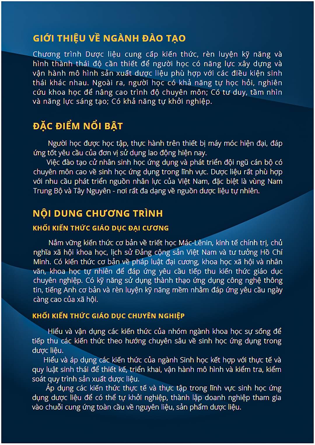 • Tên ngành: Sinh học ứng dụng (Dược liệu)