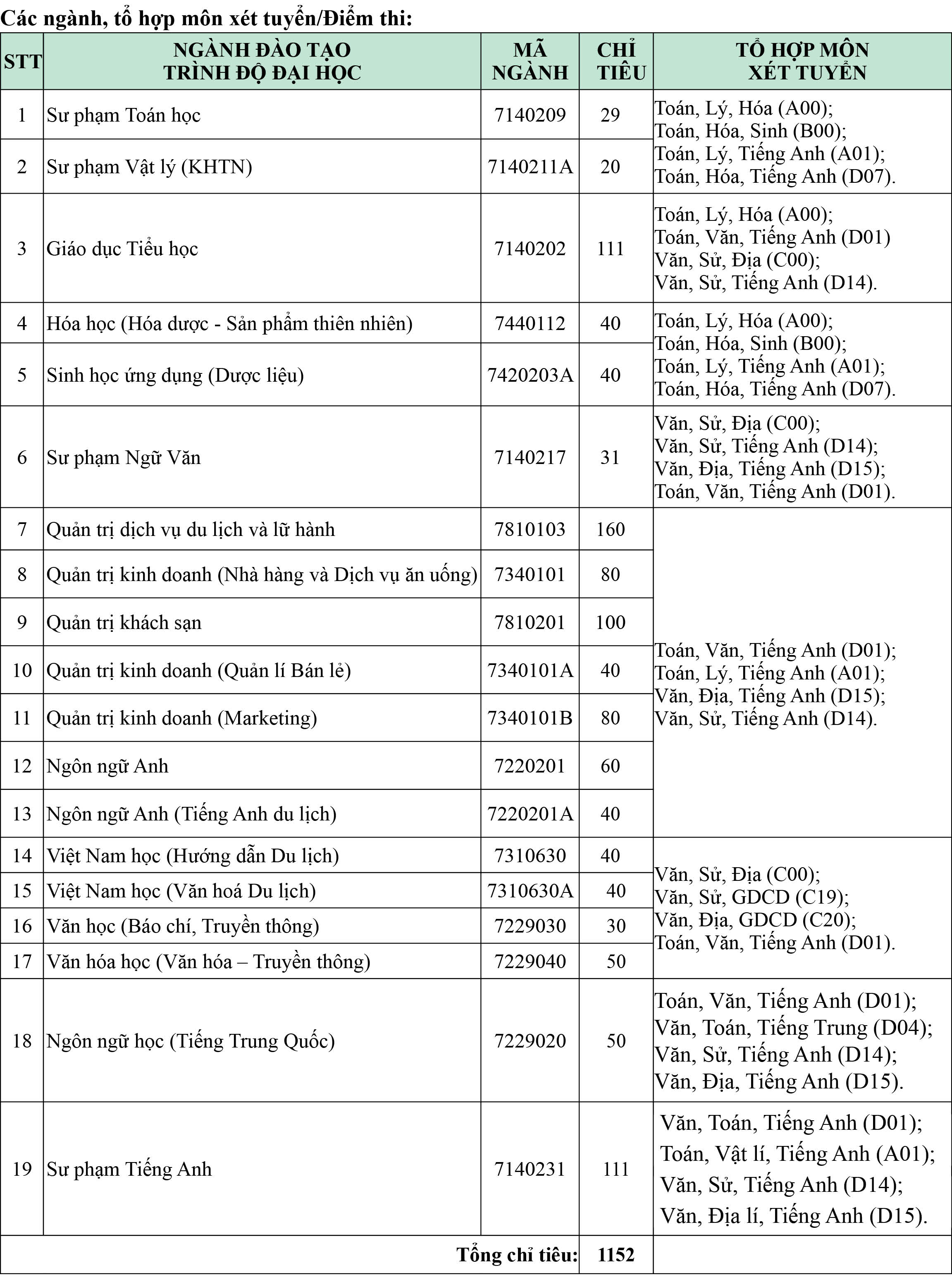 Lưu ý: Tổ hợp môn xét tuyển chỉ dành cho phương thức xét tuyển dựa vào kết quả kỳ thi TN THPT năm 2022 và xét tuyển dựa vào học bạ.