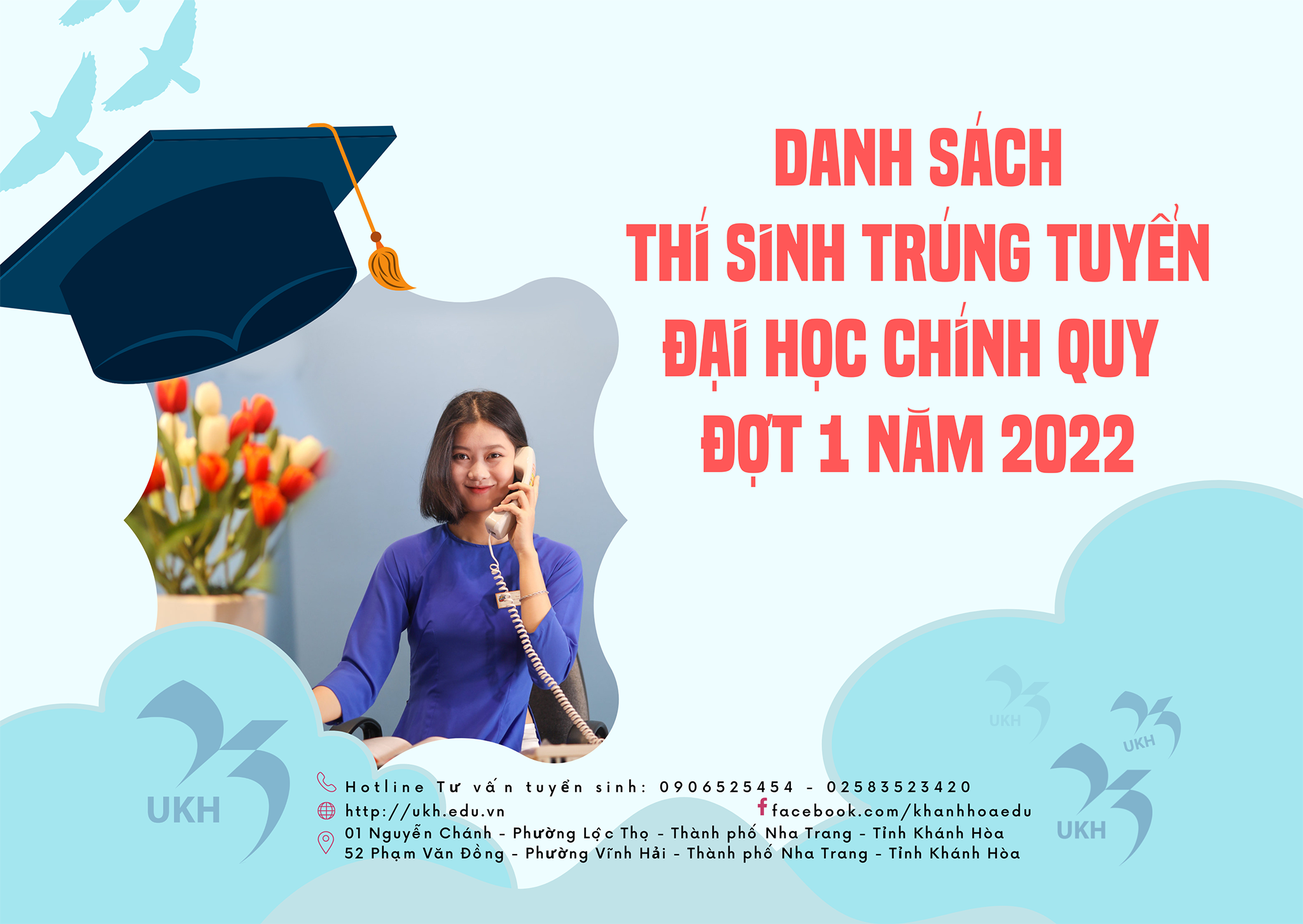 Mọi thông tin vui lòng liên hệ trực tiếp Ban Thư ký tuyển sinh Trường Đại học Khánh Hòa, 01 Nguyễn Chánh, Tp. Nha Trang.