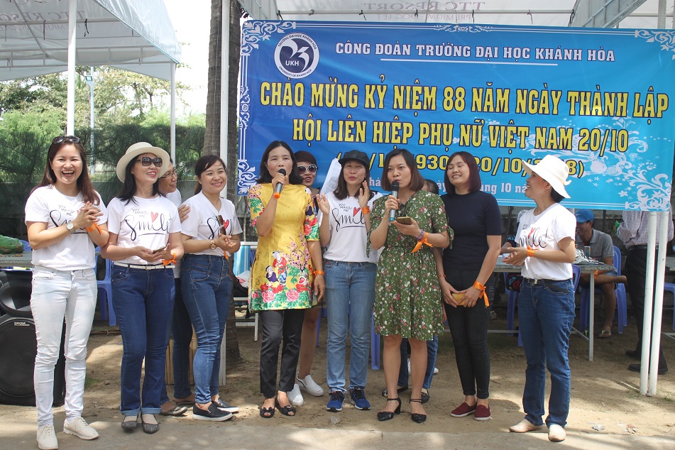 Thực hiện kế hoạch hoạt động năm học 2018 -2019 của Nhà trường và CĐCS Trường Đại học Khánh Hòa, ngày 20 tháng 10 năm 2018, tại Khu Resort TTC – Dốc Lếch – Ninh Hòa, Công đoàn Trường đã tổ chức Hoạt động kỷ niệm 88 năm ngày thành lập Hội liên hiệp Phụ nữ Việt Nam. Công đoàn Khoa Khoa học Xã hội và Nhân văn đã tham gia hết sức nhiệt tình và góp phần không nhỏ vào thành công của hoạt động.