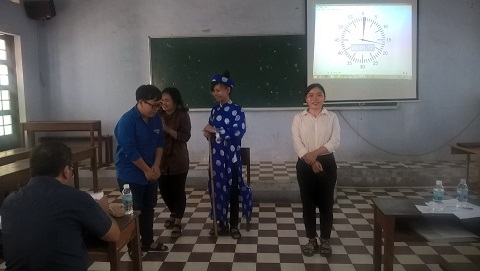 Hình 1: Lớp Sư phạm Địa lý – Lịch sử K42 thể hiện phần thi Chào hỏi