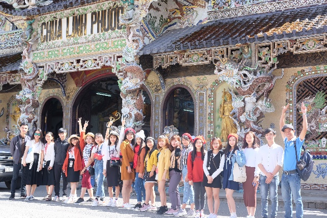 Hình 2: Lớp Việt Nam học K1 chụp hình lưu niệm tại Chùa Linh Phước