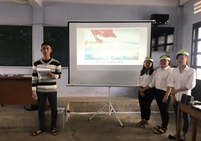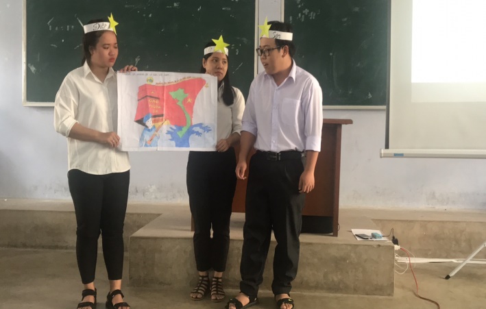 Thực hiện mục tiêu đào tạo rèn luyện năng lực tổ chức các hoạt động ngoại khóa ở trường phổ thông cho sinh viên, tổ bộ môn Địa lý - Lịch sử đã hướng dẫn sinh viên lớp sư phạm Địa - Sử khóa 42 xây dựng kế hoạch và tổ chức hoạt động ngoại khóa với chủ đề “Em yêu biển đảo quê hương”.