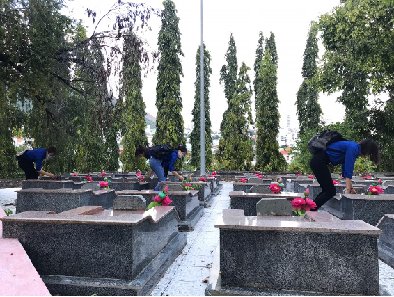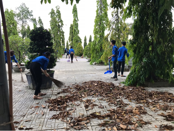 H.2. Đoàn viên dọn vệ sinh ở khuôn viên nghĩa trang