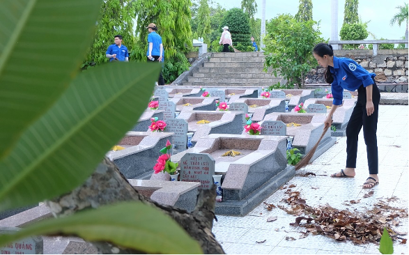 H.3. Đoàn viên quét dọn trong các phần mộ
