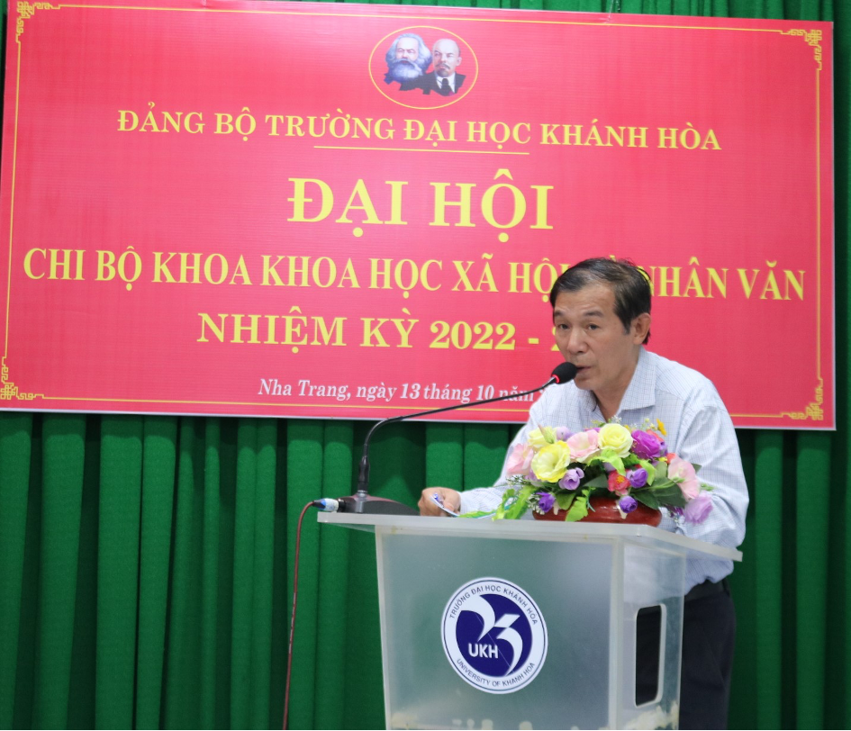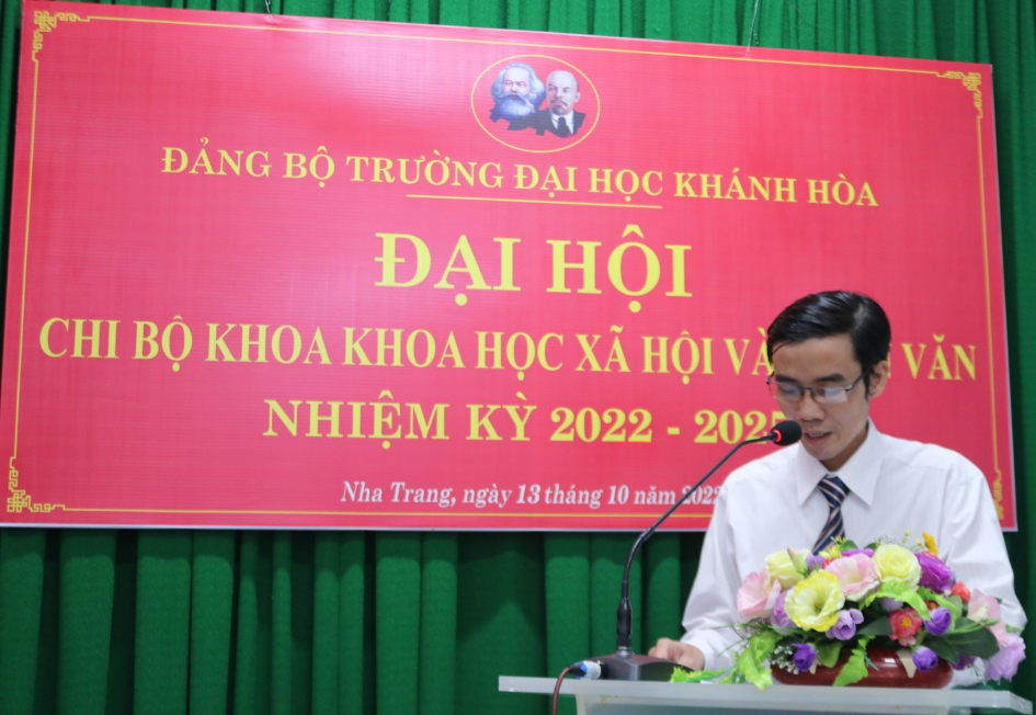 Thực hiện Công văn số 1999-CV/BTCTU ngày 19/4/2022 của Ban Tổ chức Tỉnh ủy v/v hướng dẫn tổ chức đại hội Chi bộ trực thuộc Đảng ủy cơ sở, Đảng ủy bộ phận nhiệm kỳ 2022 – 2025; theo Công văn số 20-KH/ĐU ngày 11/8/2022 của Đảng ủy Trường Đại học Khánh Hòa về Kế hoạch tổ chức đại hội các Chi bộ trực thuộc Đảng ủy Trường Đại học Khánh Hòa nhiệm kỳ 2022 – 2025; đồng thời được sự nhất trí của Ban Thường vụ Đảng uỷ Trường Đại học Khánh Hòa, vào lúc 14h ngày 13/10/2022, tại phòng họp 1, Chi bộ khoa Khoa học Xã hội và Nhân văn đã long trọng tổ chức Đại hội chi bộ nhiệm kỳ 2022-2025.