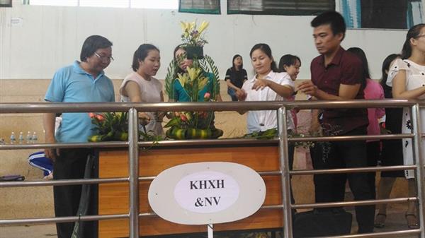 Ở phần thi cắm hoa, các cô Ngô Thị Khánh Linh, Trần Thị Kim Thu và thầy Trương Đình Dũng cố gắng trổ tài nghệ thuật khéo léo với lẵng hoa kép có chủ đề “Mẹ và con gái”. Sản phẩm cắm hoa – thuyết trình đã đem thêm một giải ba về cho Công đoàn Khoa Khoa học Xã hội và Nhân văn.