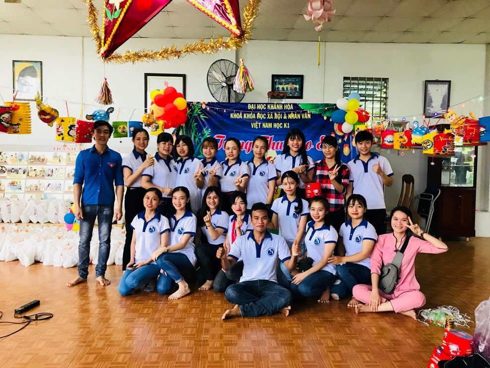 Phát huy truyền thống của Khoa Khoa học Xã hội và Nhân văn, chiều ngày 22 tháng 9 năm 2018 tại chùa Phước Tường - Phước Đồng,Thành phố Nha Trang, Khánh Hòa, lớp Việt Nam học K01- Khoa Khoa học Xã Hội và Nhân văn, Trường Đại học Khánh Hòa đã dùng số tiền xin từ nguồn tài trợ của các cá nhân hảo tâm cộng với số tiền các bạn trong lớp quyên góp để tổ chức chương trình “Trung thu cho em” cho các em nhỏ cơ nhỡ tại chùa Phước Tường và Mái ấm tình thương - Xã Phước Đồng.