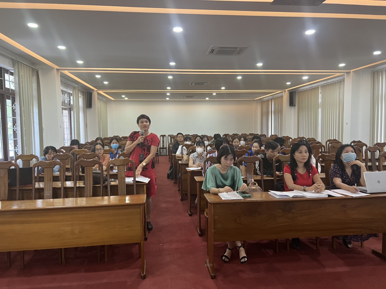 Sáng ngày 24/9/2022, tại phòng 206C, Khoa Lý luận cơ bản đã tổ chức thành công hội thảo với chủ đề: “Phương pháp vận hành hệ thống học liệu, phương pháp giảng dạy và đánh giá các môn lý luận chính trị phù hợp với mô hình giảng đường thông minh (trên phần mềm microsoft teams) tại trường đại học Khánh Hòa”. Tham dự hội thảo có: TS. Trần Thị Yên Ninh - Trưởng khoa Lý luận cơ bản; các thầy cô trong Ban chủ nhiệm khoa, các thầy, cô là giảng viên trong và ngoài khoa cùng các bạn sinh viên trường Đại học Khánh Hòa.