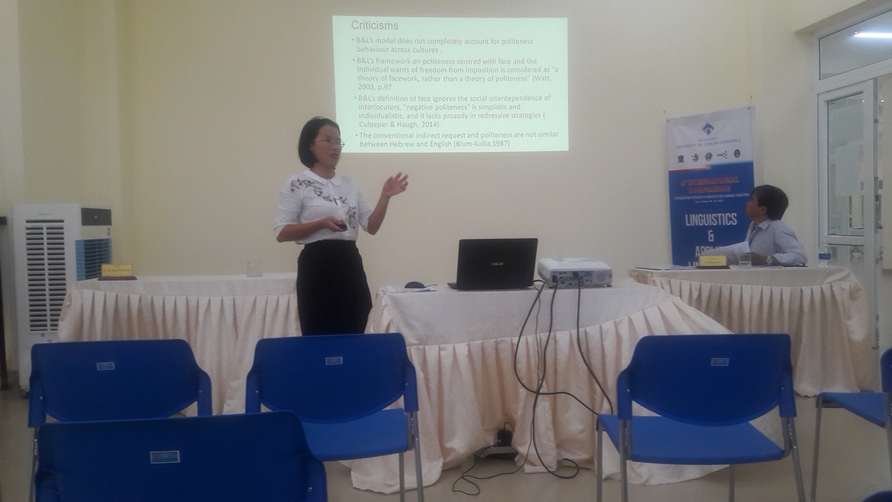2. “Vietnamese Politeness in Semi-formal Interactions” do Ths Đinh Thị Lam Trà, giảng viên Tổ tiếng Anh thực hiện bằng tiếng Anh.