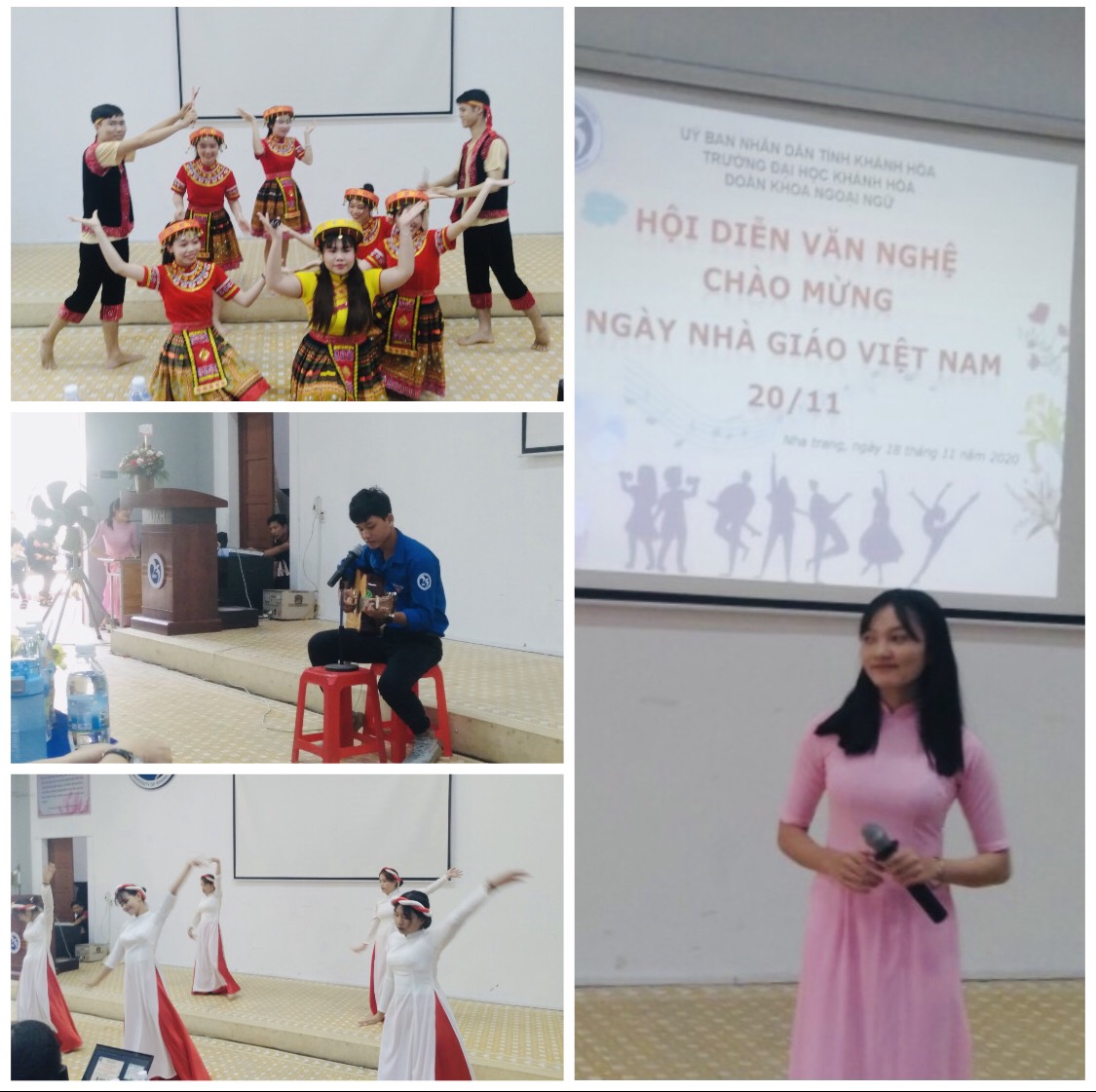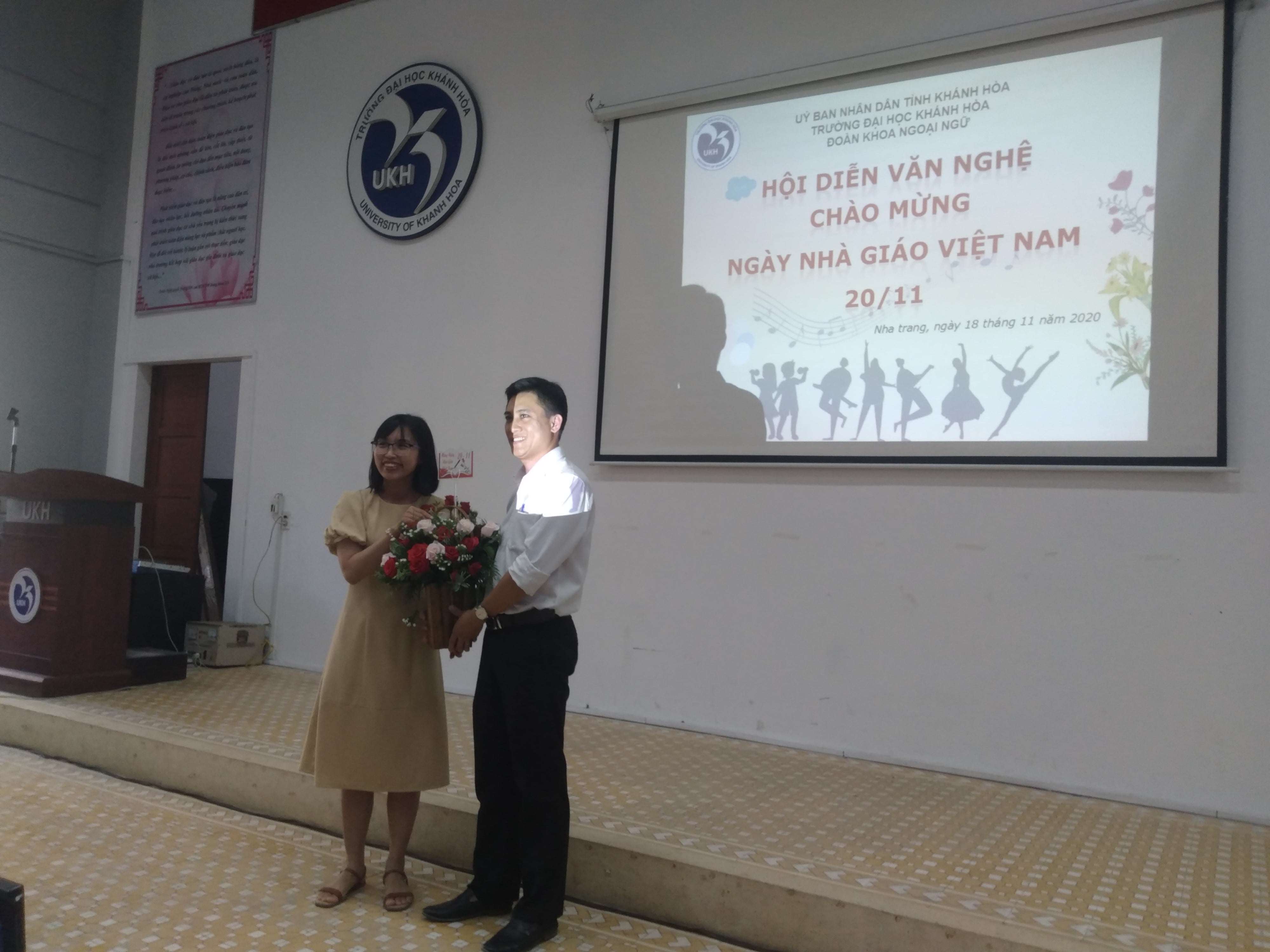 Sáng 18 tháng 11 năm 2020, tại Giảng đường 1 Đoàn Khoa Ngoại ngữ đã tổ chức “Hội diễn văn nghệ chào mừng ngày Nhà giáo Việt nam 20/11". Đến tham dự chương trình có sự góp mặt của cô Võ Tú Phương – Phụ trách khoa Ngoại ngữ , thầy Trương Văn Phượng– Bí thư Đoàn trường đại học Khánh Hòa và cô Đỗ Hàng Uyên Thy– Bí thư Đoàn khoa Ngoại ngữ cùng toàn thể giảng viên, sinh viên trong khoa.