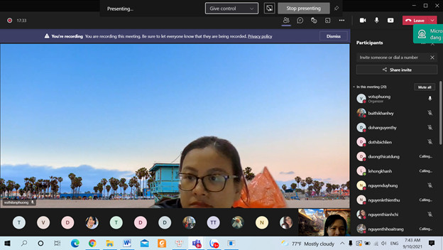 Sáng nay, vào lúc 7 giờ 30 ngày 10 tháng 9 năm 2021, khoa Ngoại ngữ trường Đại học Khánh Hòa đã tổ chức buổi Workshop: SỬ DỤNG CÔNG NGHỆ Ở CÁC LỚP HỌC ONLINE do Ts. Võ Tú Phương trình bày trên phần mềm Microsoft Teams nhằm hỗ trợ các thầy cô giảng dạy và kiểm tra trên các lớp học online. Tham dự buổi Workshop có ban chủ nhiệm Khoa cùng toàn thể giảng viên khoa Ngoại ngữ.