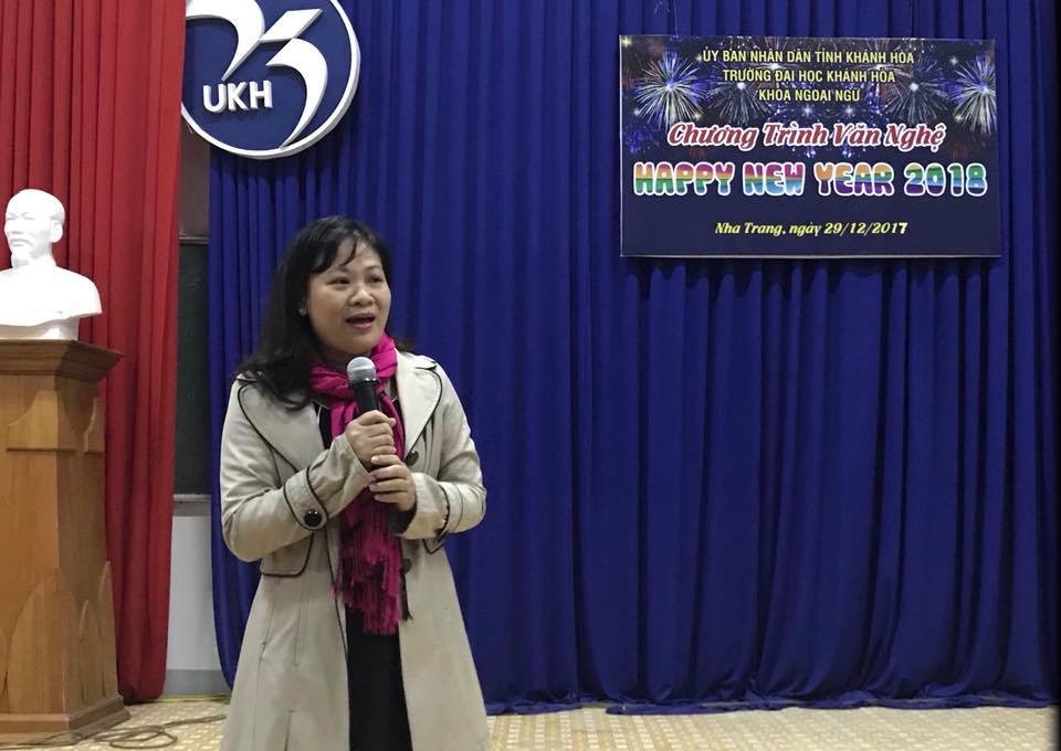 Thay mặt cho Ban chủ nhiệm khoa Ngoại ngữ, cô Đỗ Thị Thu Huế - Phụ trách khoa Ngoại ngữ đã phát biểu khai mạc buổi giao lưu, cảm ơn sự đóng góp của các giảng viên và sinh viên trong các hoạt động của khoa trong năm 2017, đồng thời dành những lời chúc tốt đẹp nhân dịp năm mới 2018.